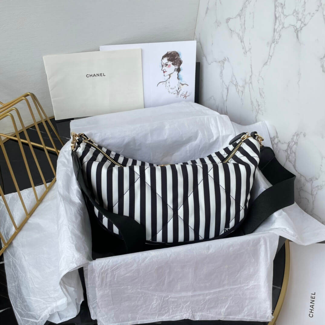 Chanel CC Convertible Chain Zip Hobo Quilted Printed Nylon Shoulder Crossbody Bag