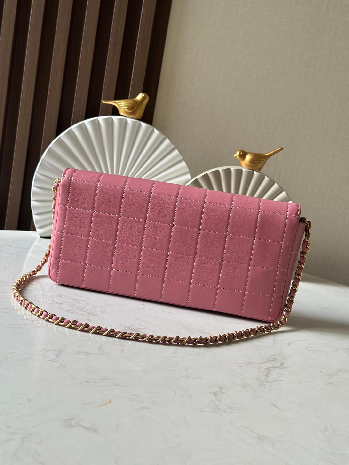 Chanel East West Chocolate Bar Flap Lambskin Leather Shoulder bag
