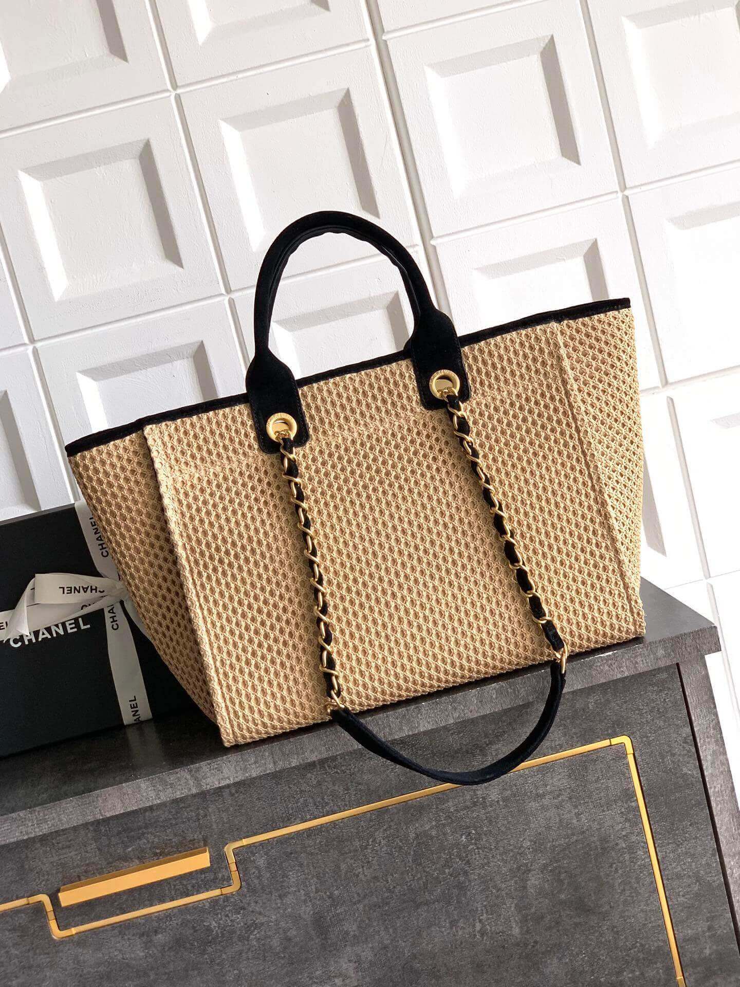 Chanel Deauville Tote 39 Denim Canvas Shoulder HandBag