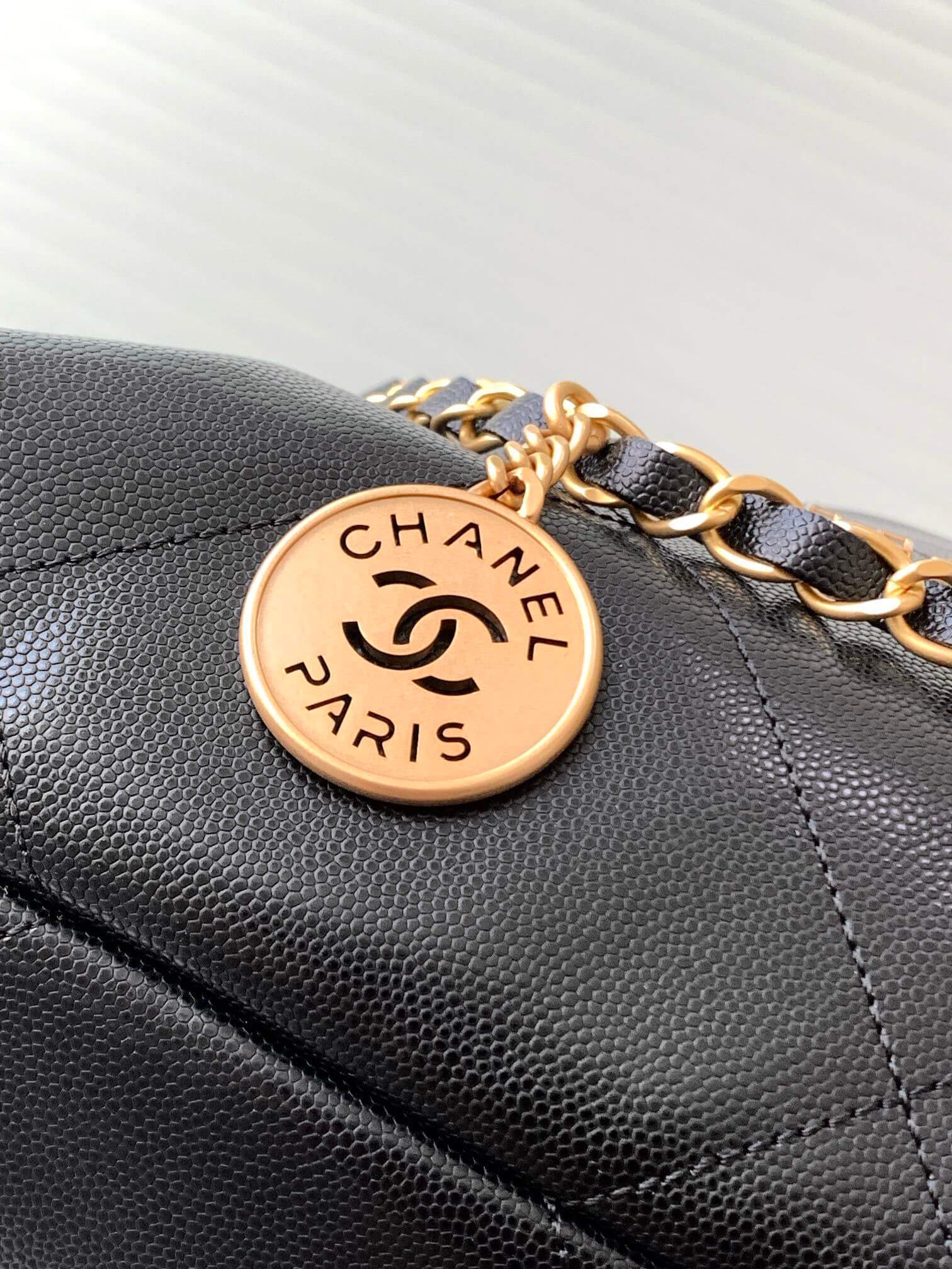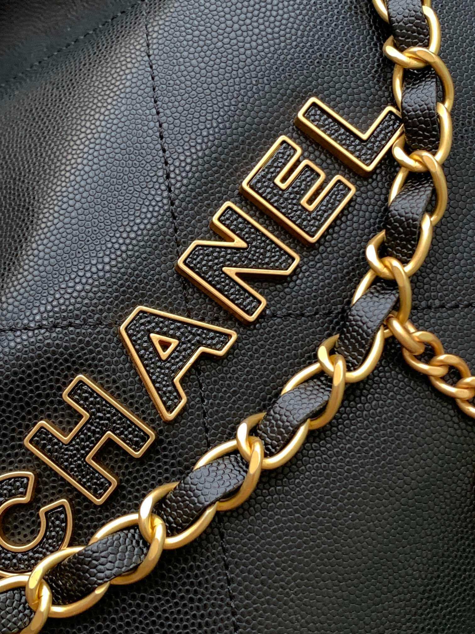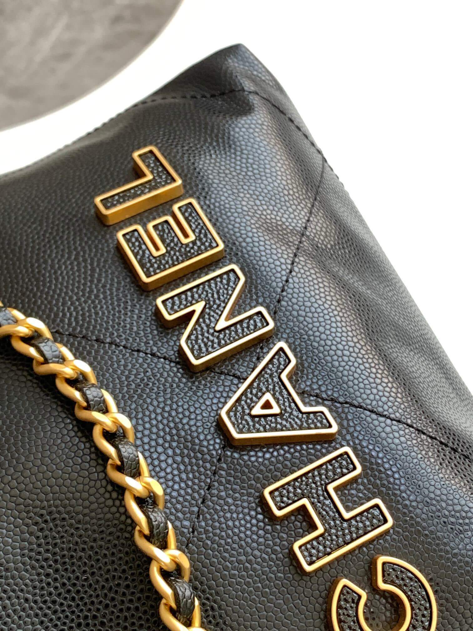 Chanel Mini 22 Shiny Grained Calfskin Caviar Leather Shoulder Handbag
