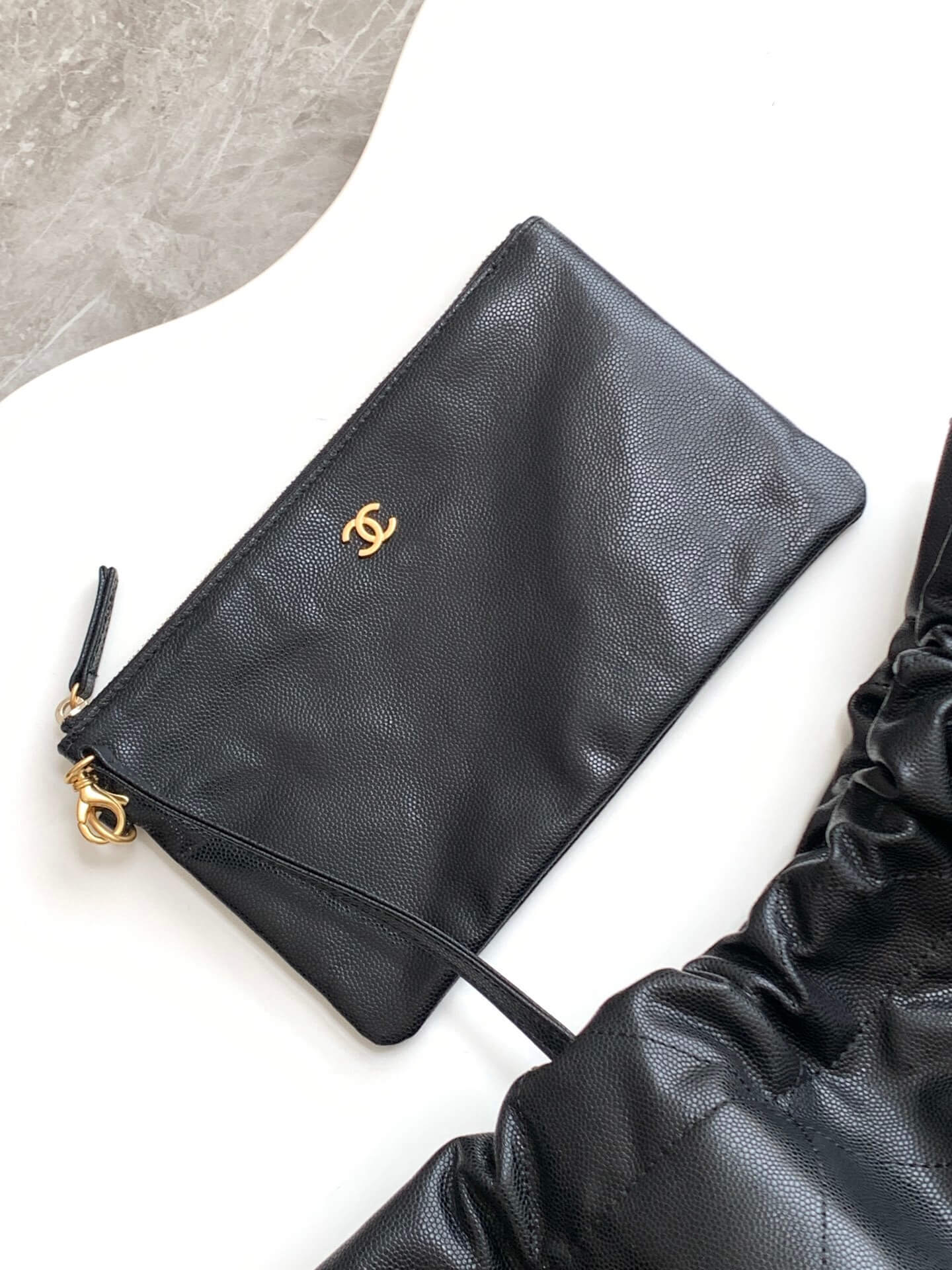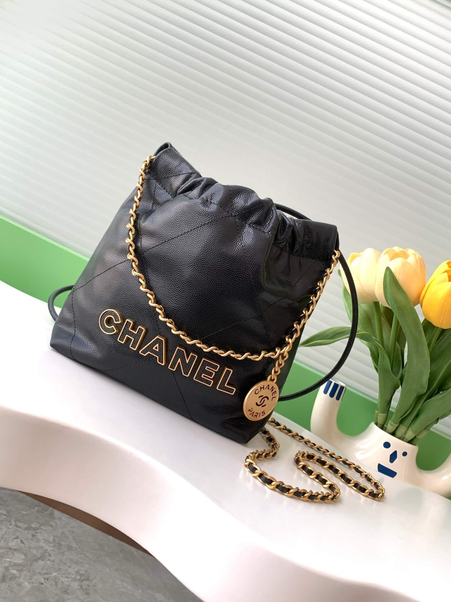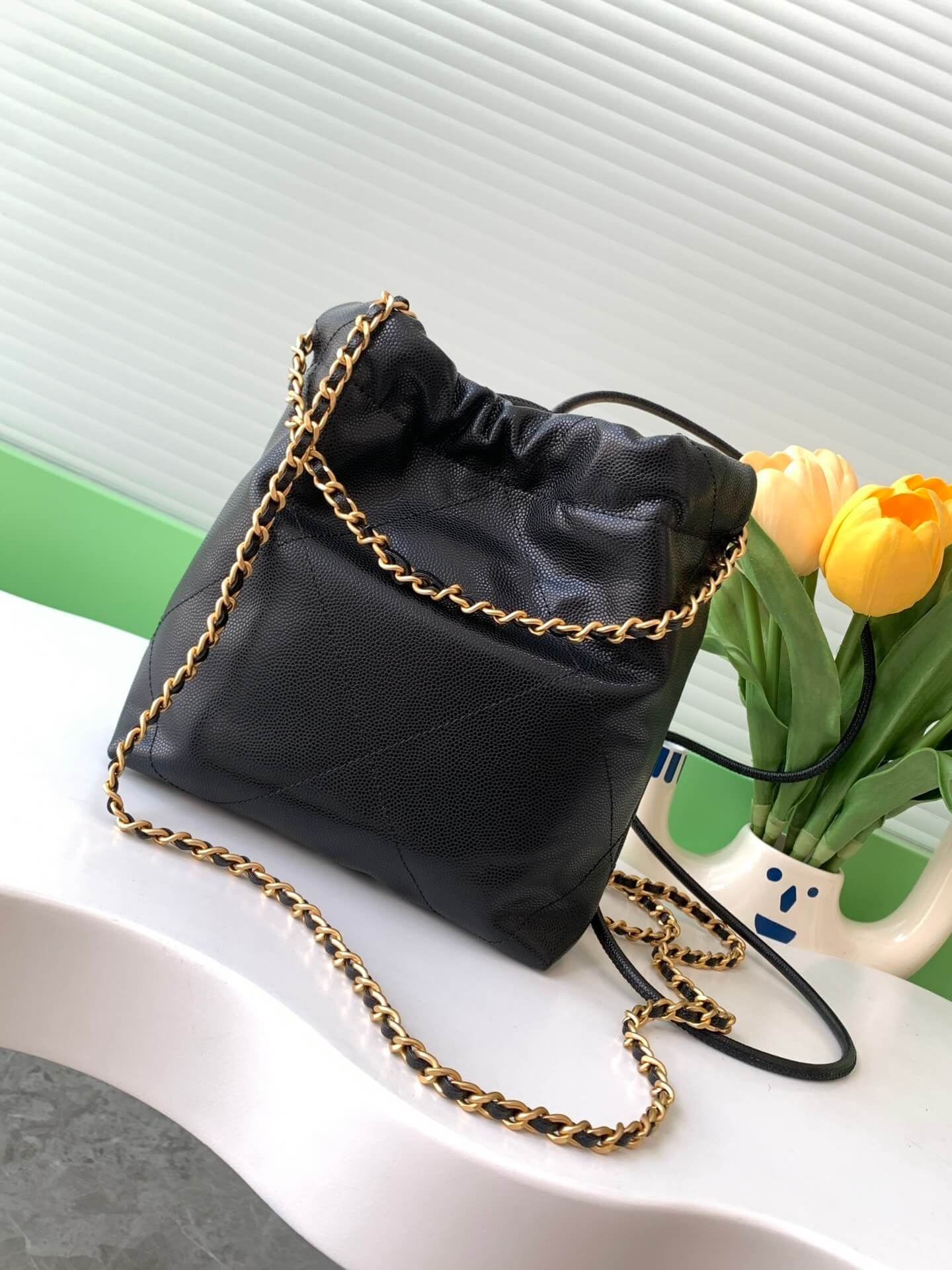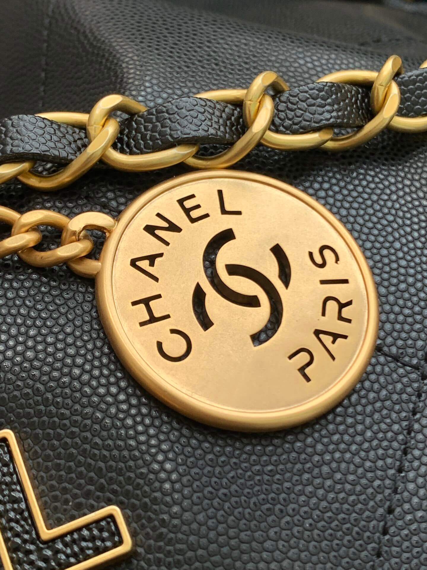 Chanel Mini 22 Shiny Grained Calfskin Caviar Leather Shoulder Handbag
