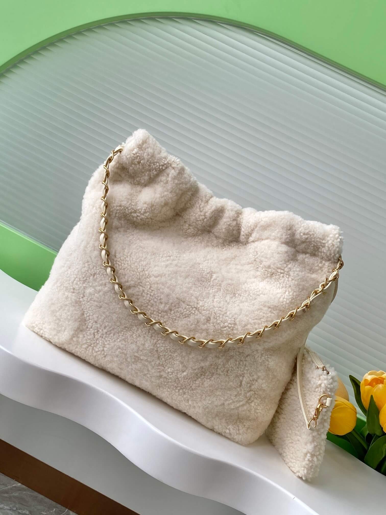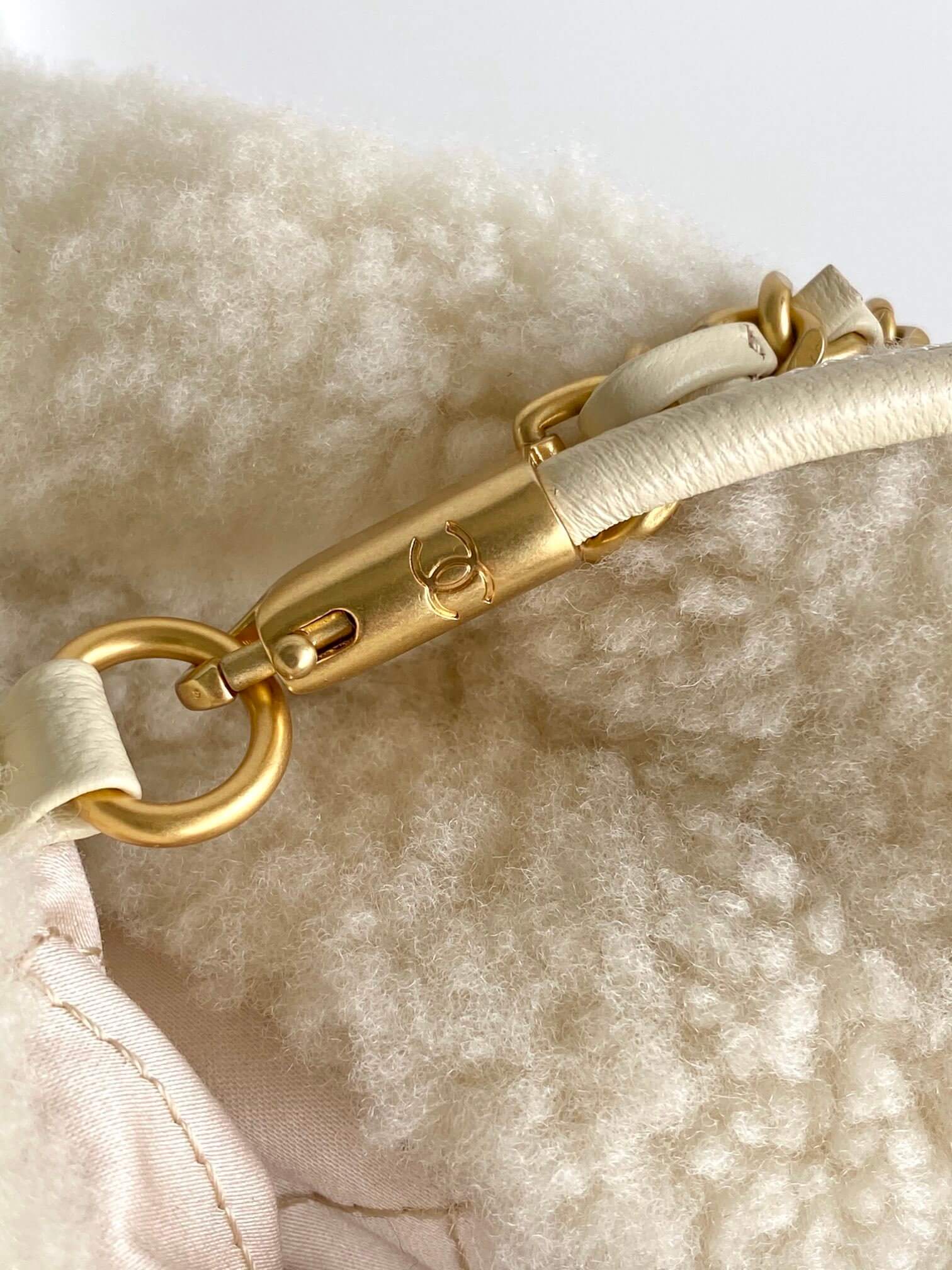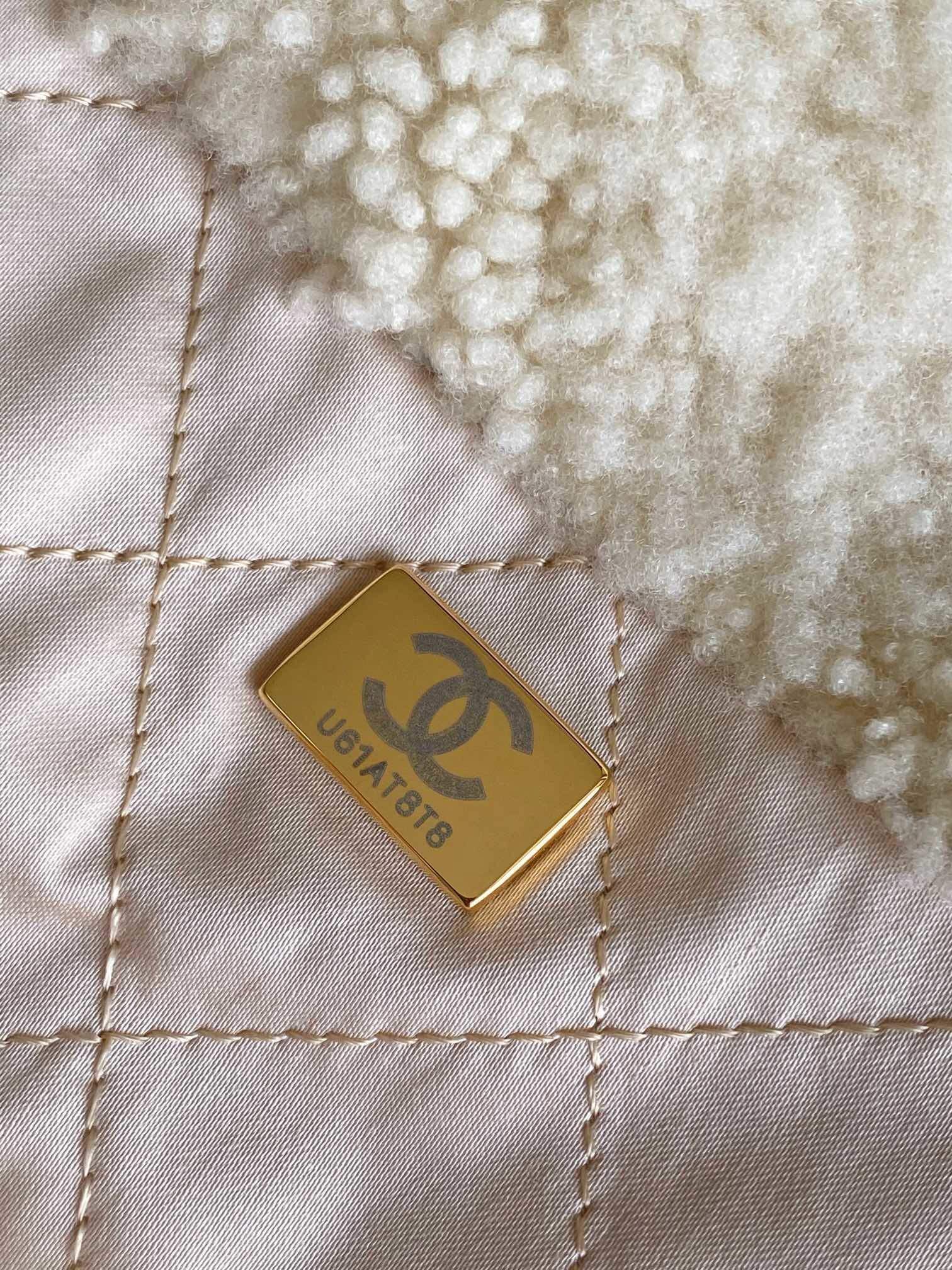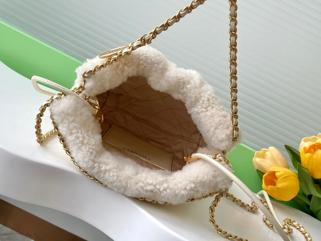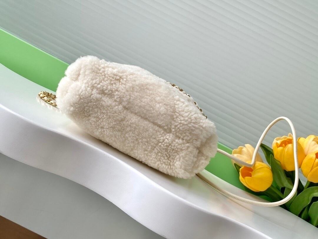 Chanel 22 Shearling Sheepskin Shoulder Handbag White