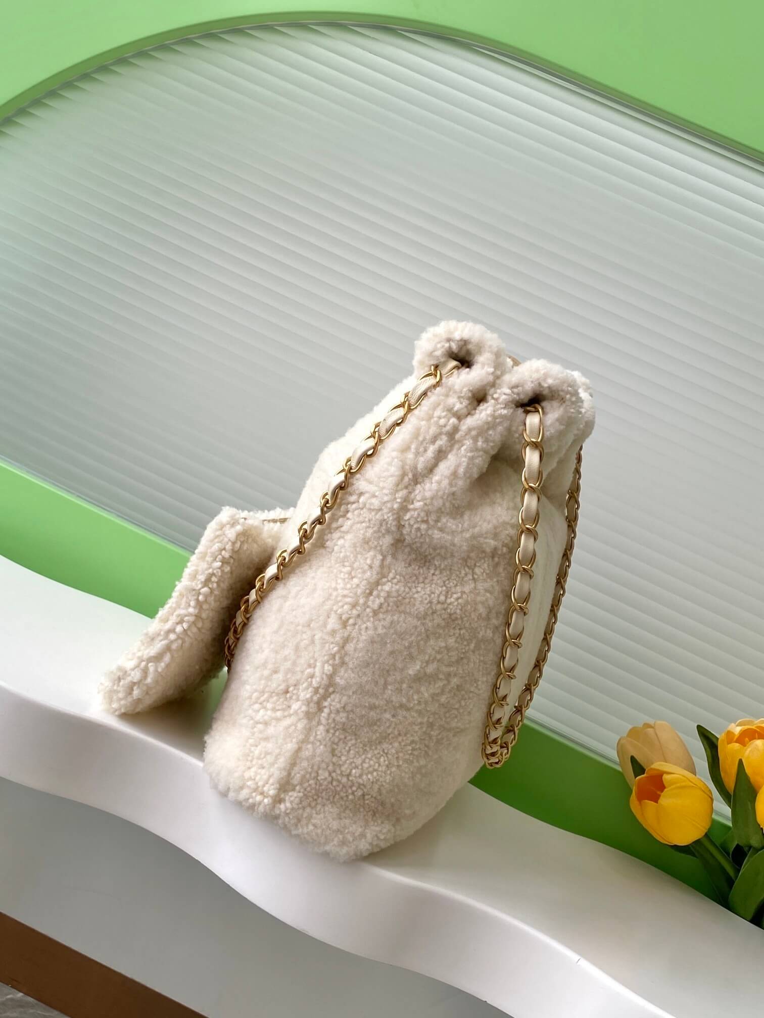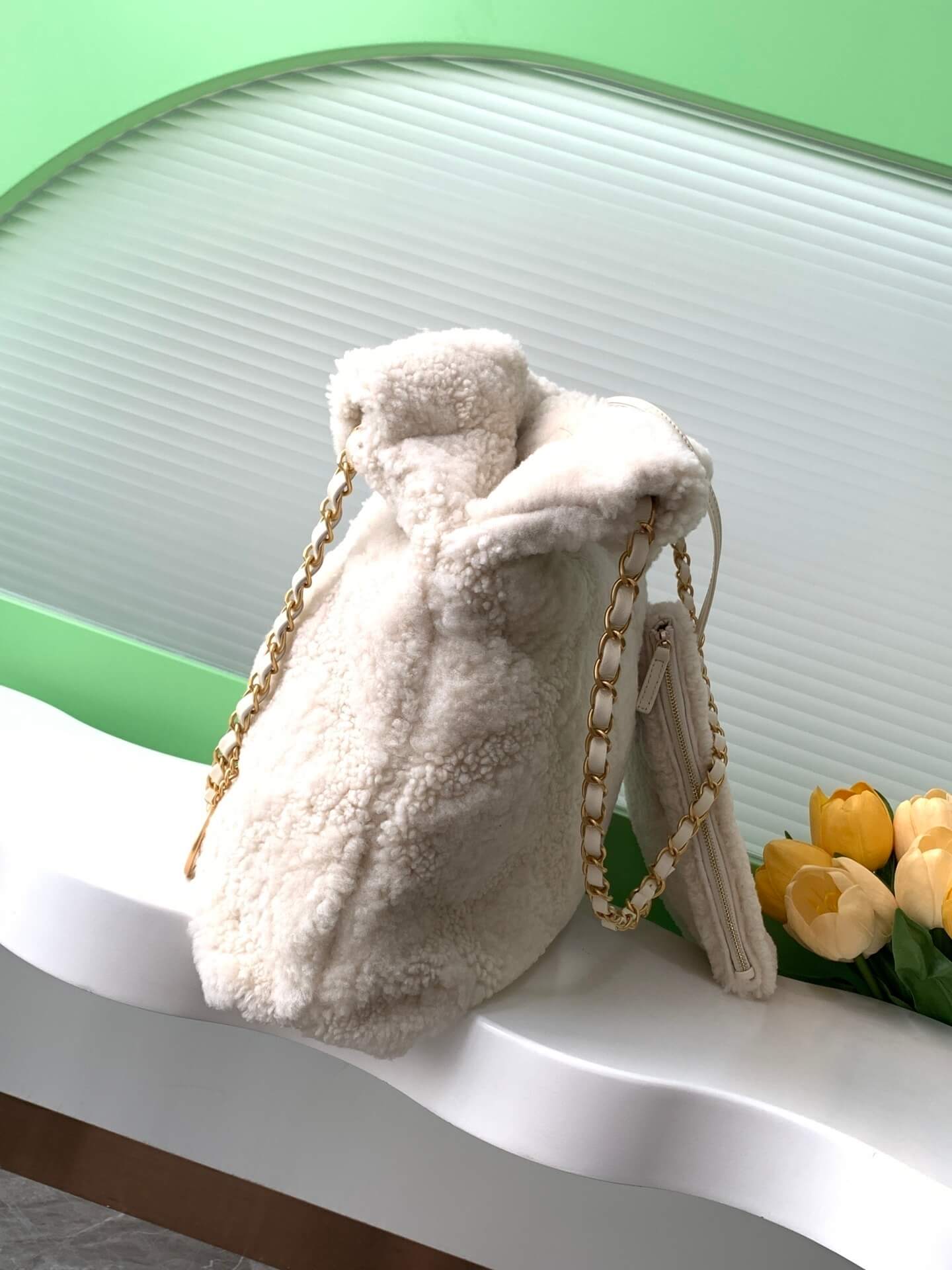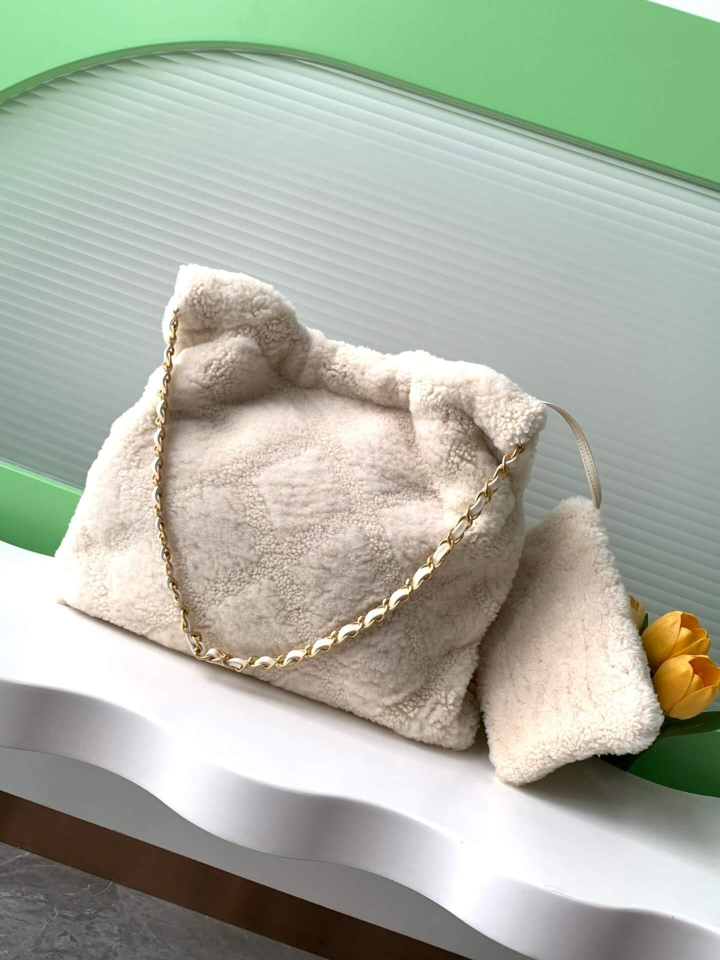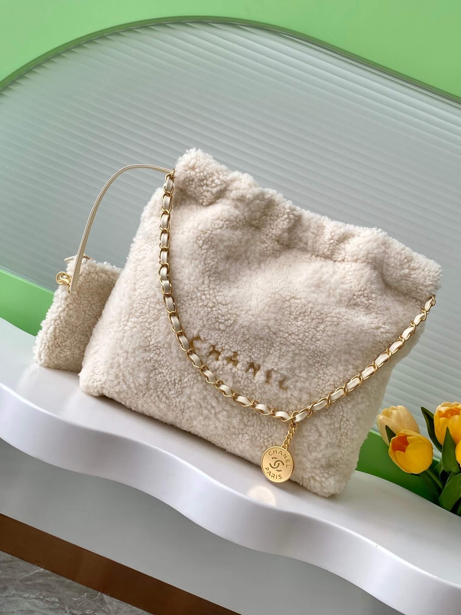 Chanel 22 Shearling Sheepskin Shoulder Handbag White