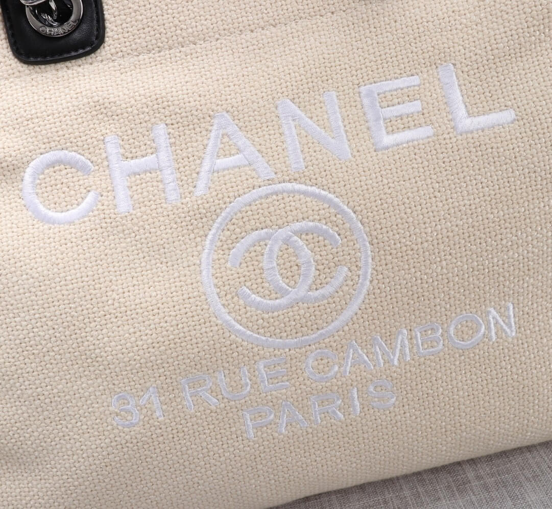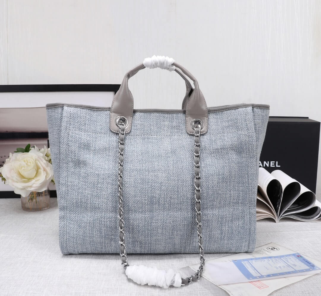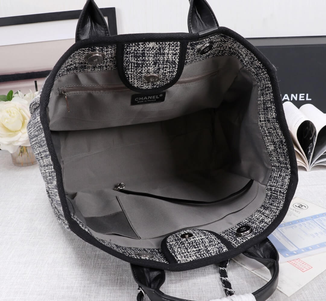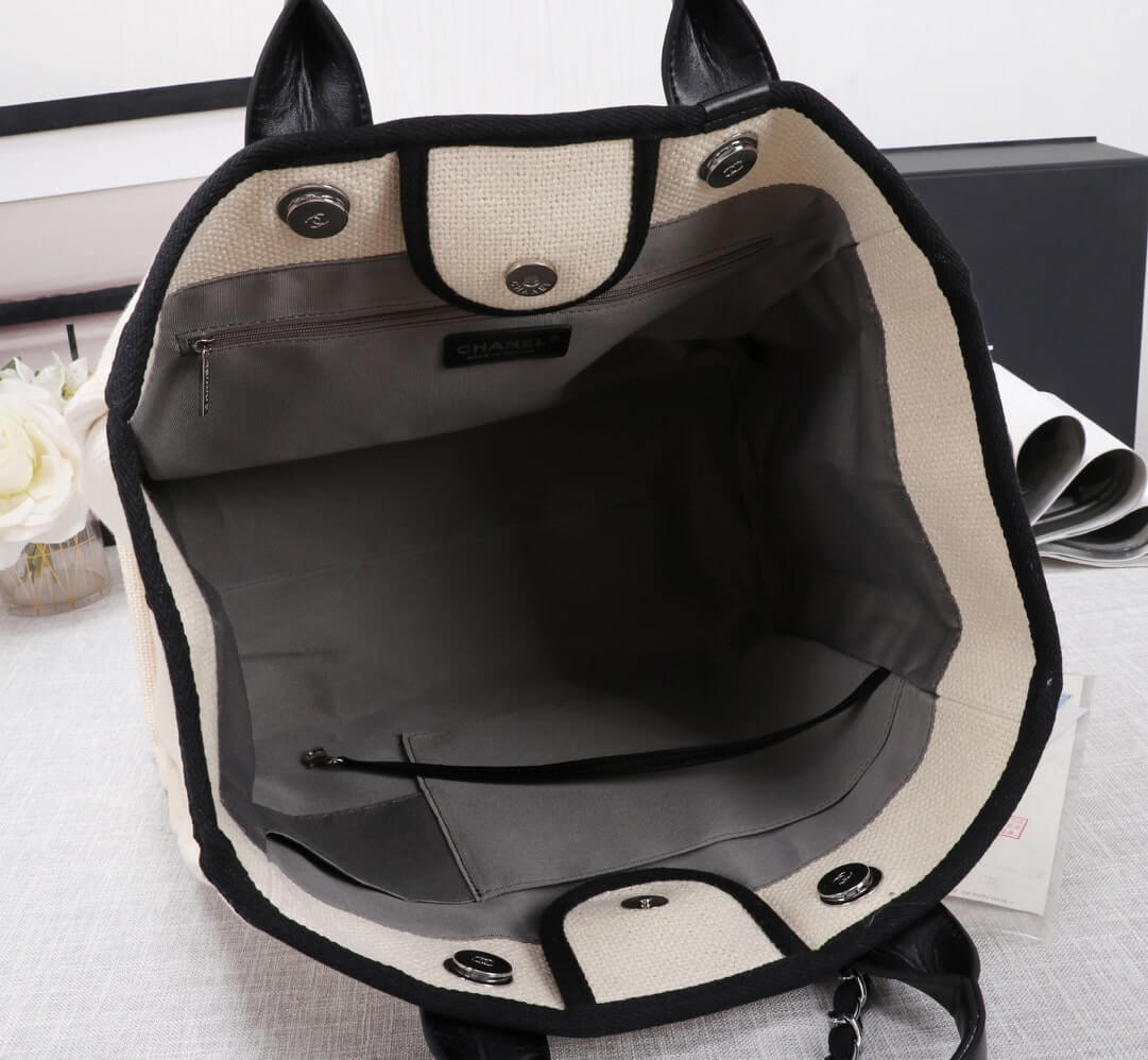 Chanel Canvas Deauville Tote Beach Shopping Shoulder HandBag