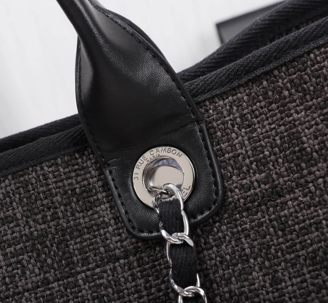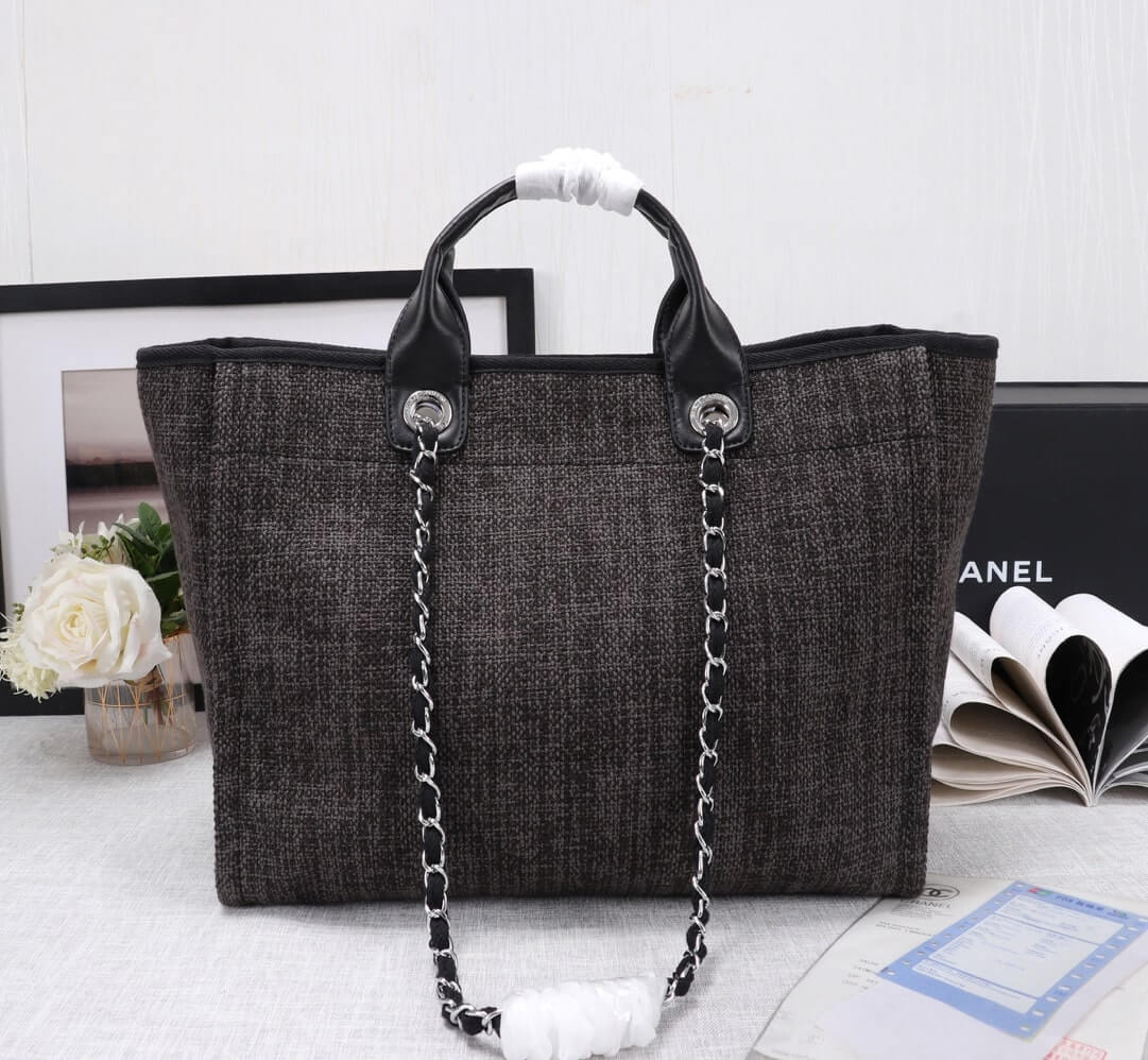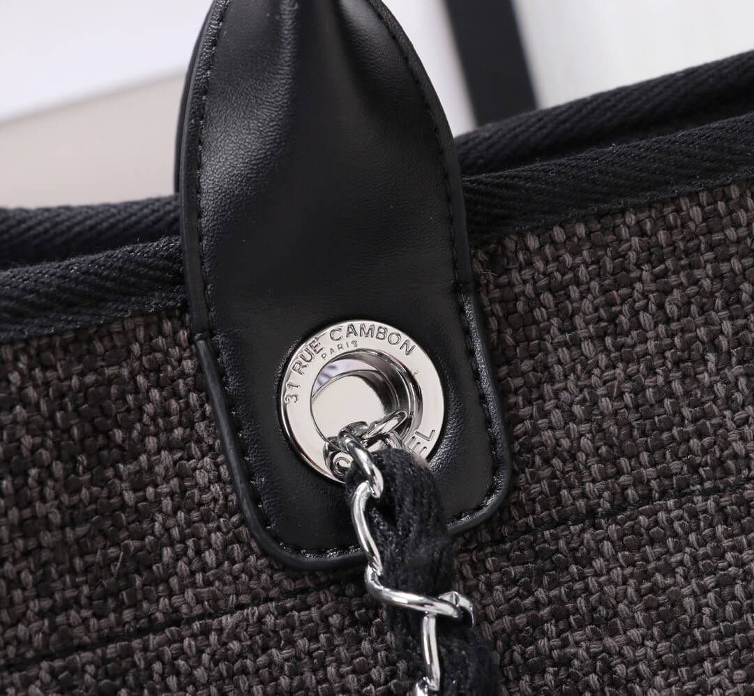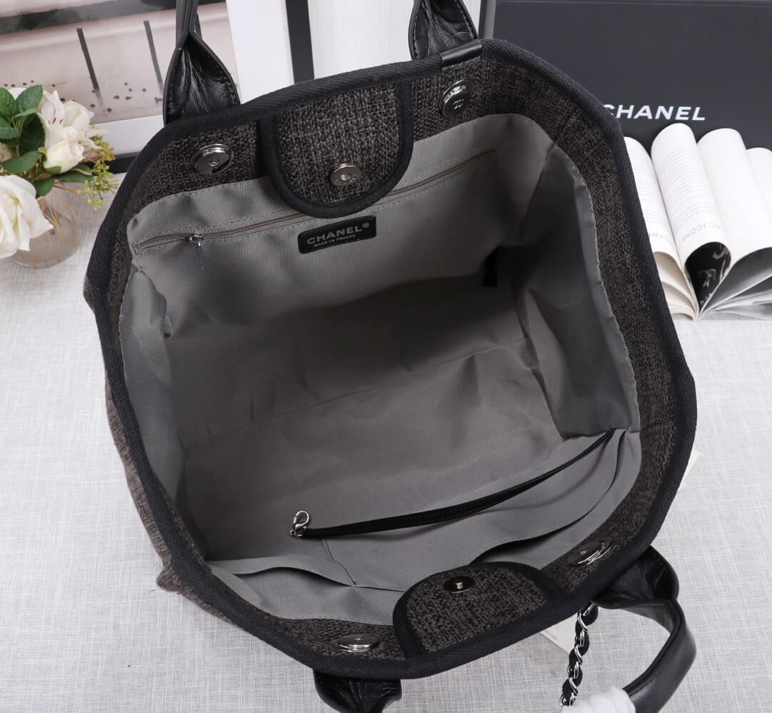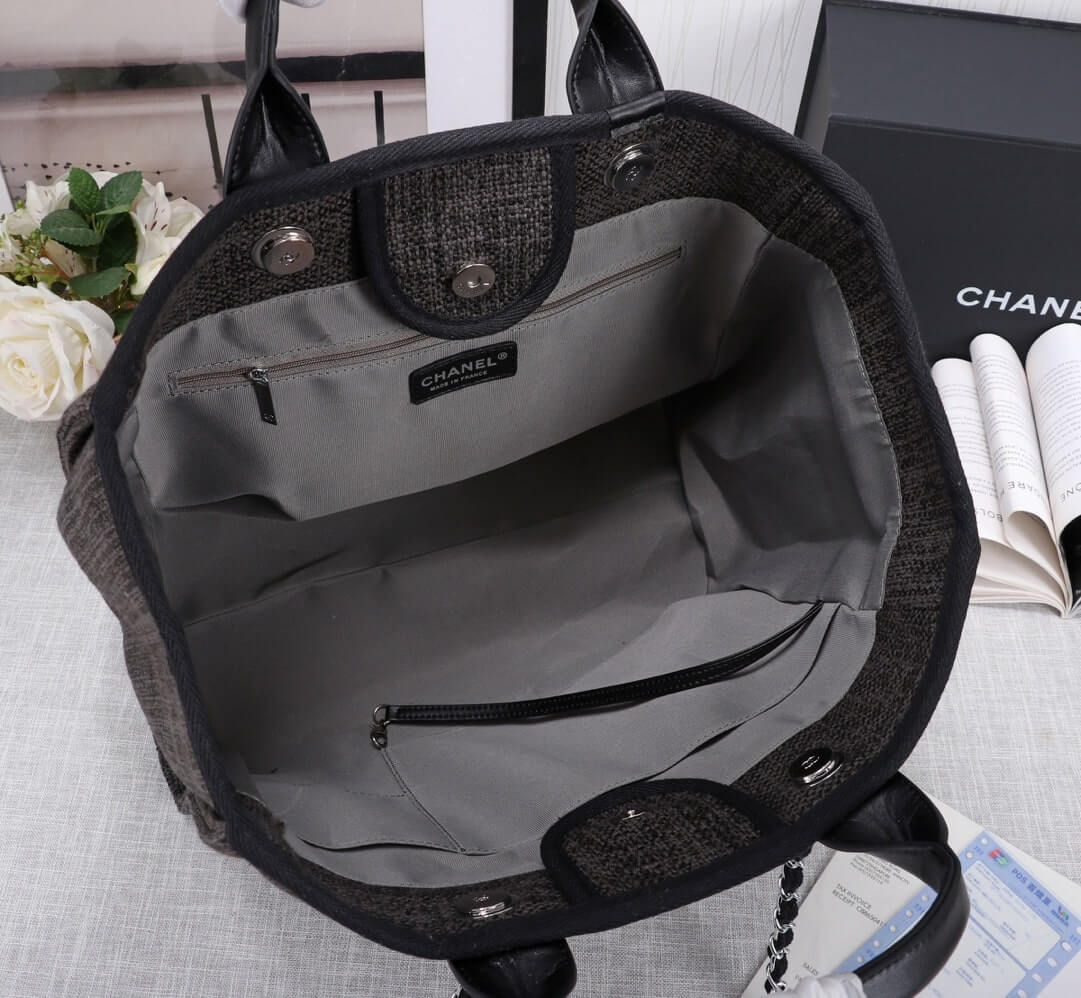 Chanel Canvas Deauville Tote Beach Shopping Shoulder HandBag