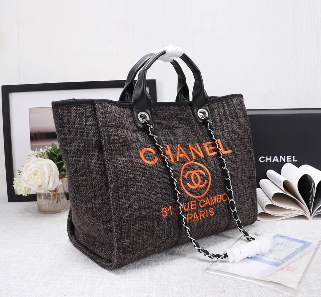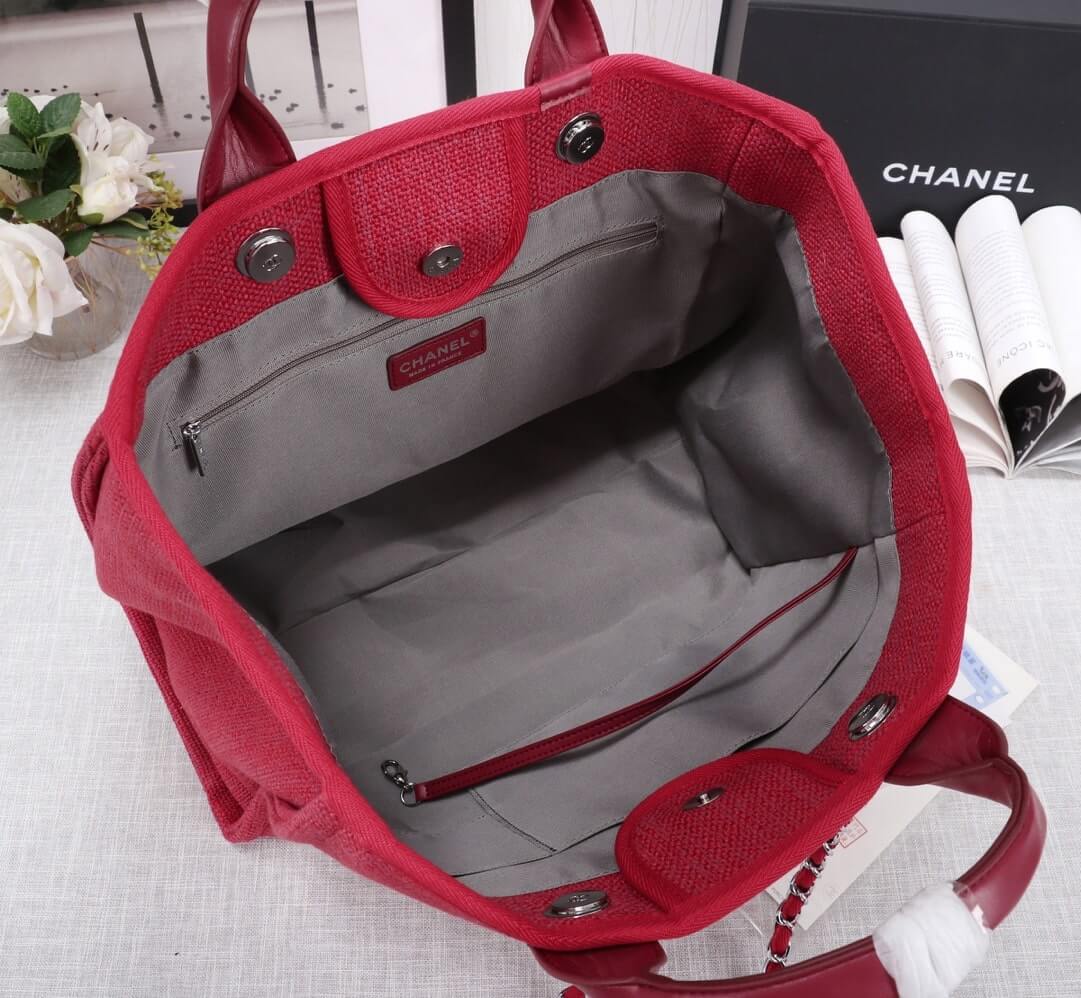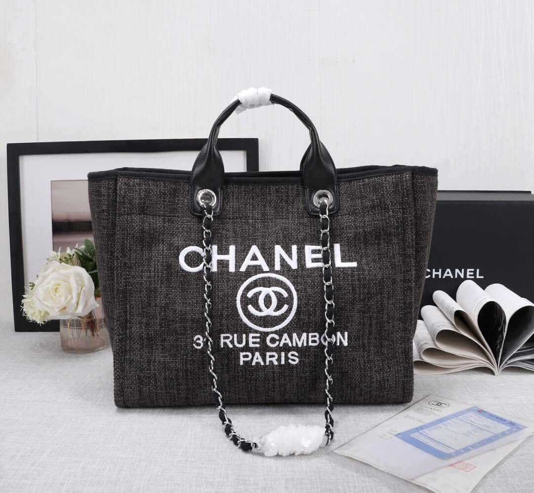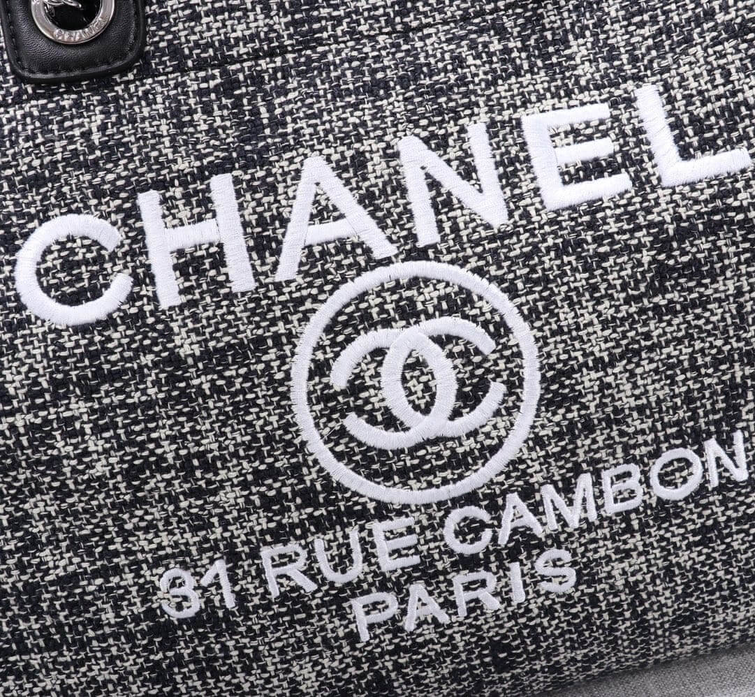 Chanel Canvas Deauville Tote Beach Shopping Shoulder HandBag