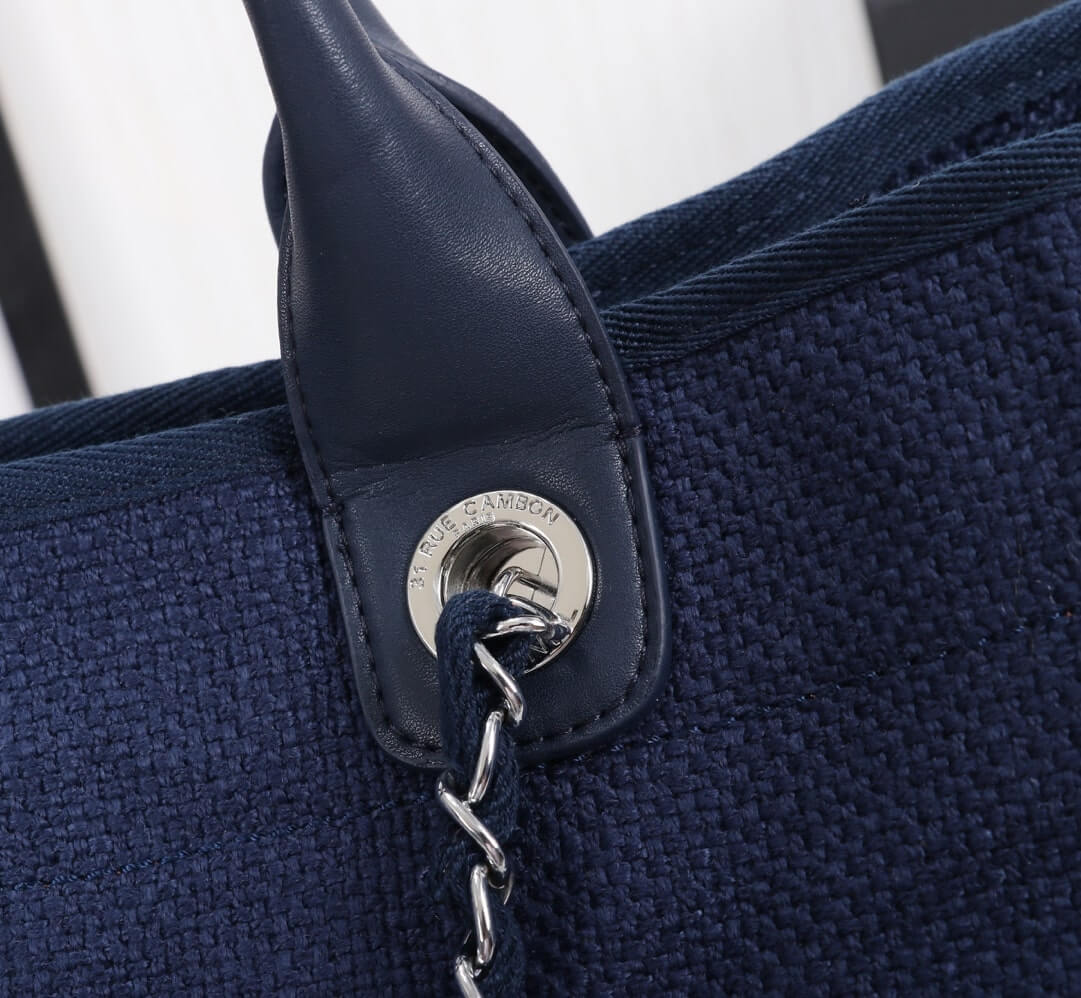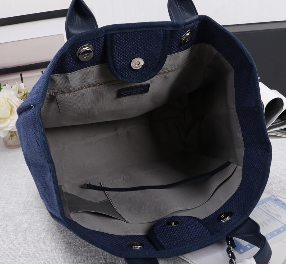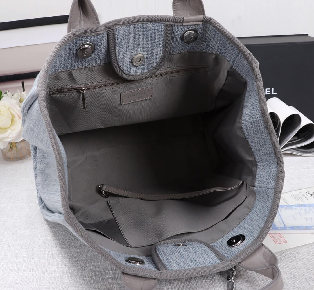 Chanel Deauville Tote 38 Denim Canvas Shoulder HandBag