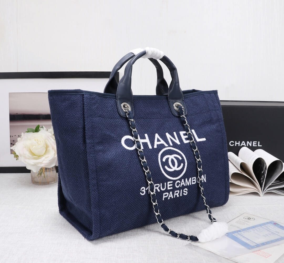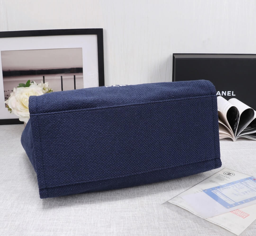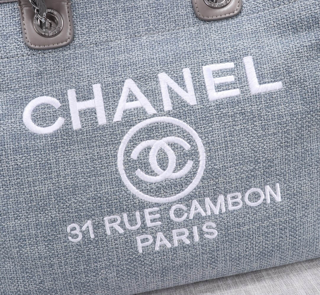 Chanel Deauville Tote 38 Denim Canvas Shoulder HandBag