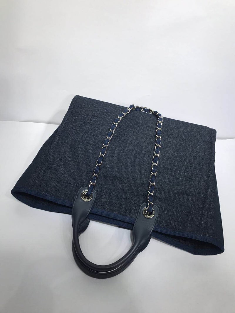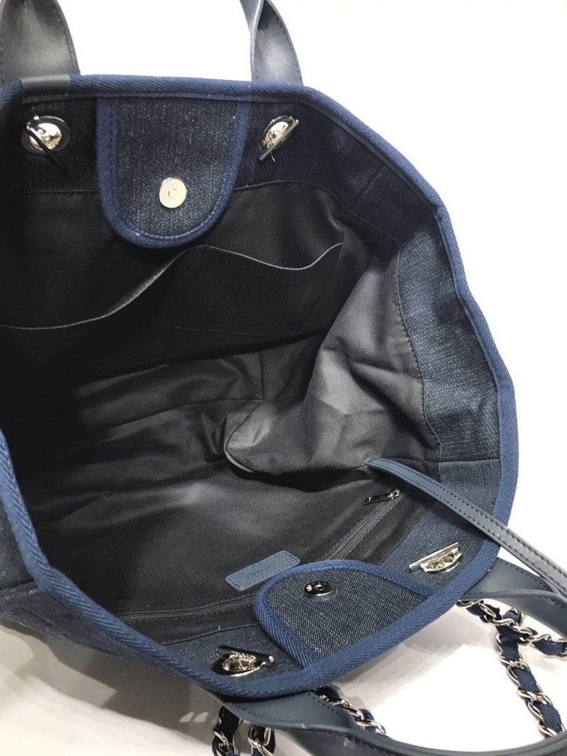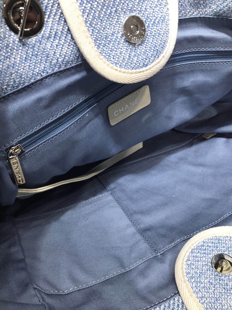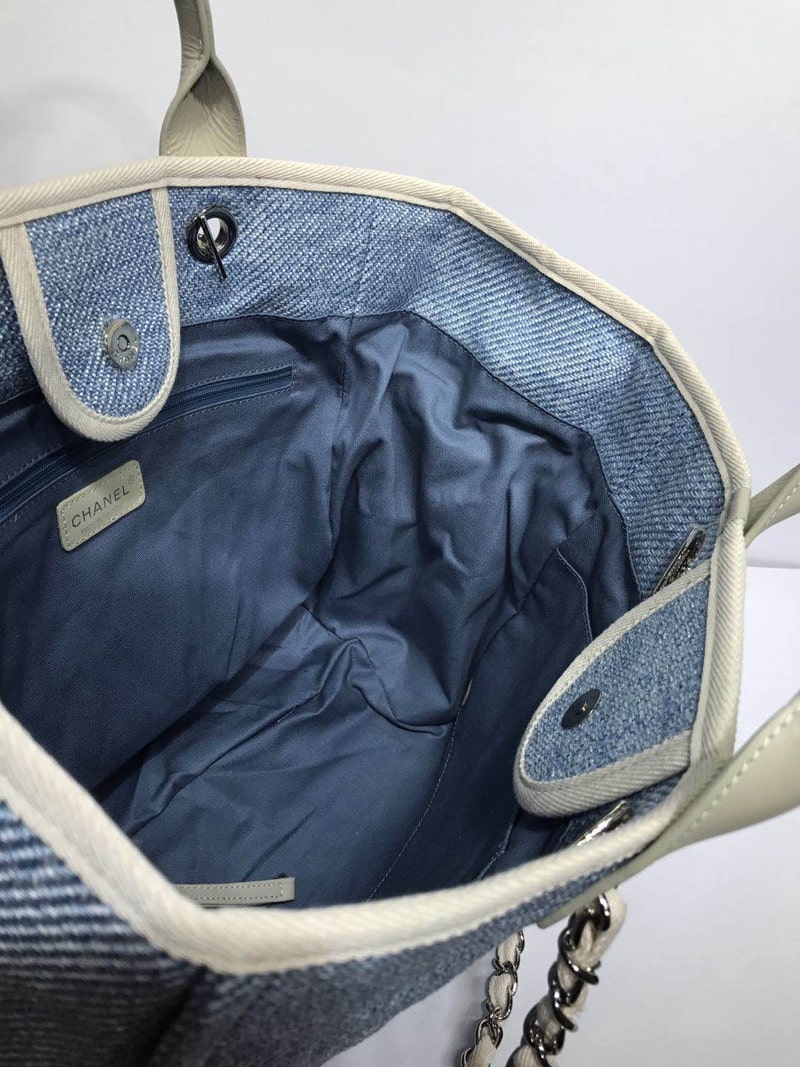 Chanel Deauville Tote Canvas Calfskin Medium – Large Shoulder HandBag Pink Blue – Blue – Black