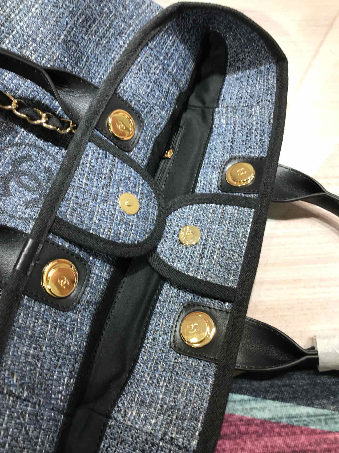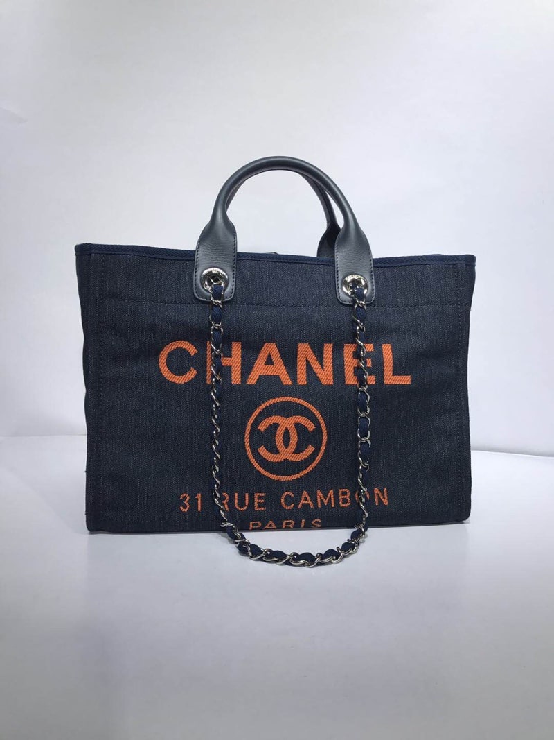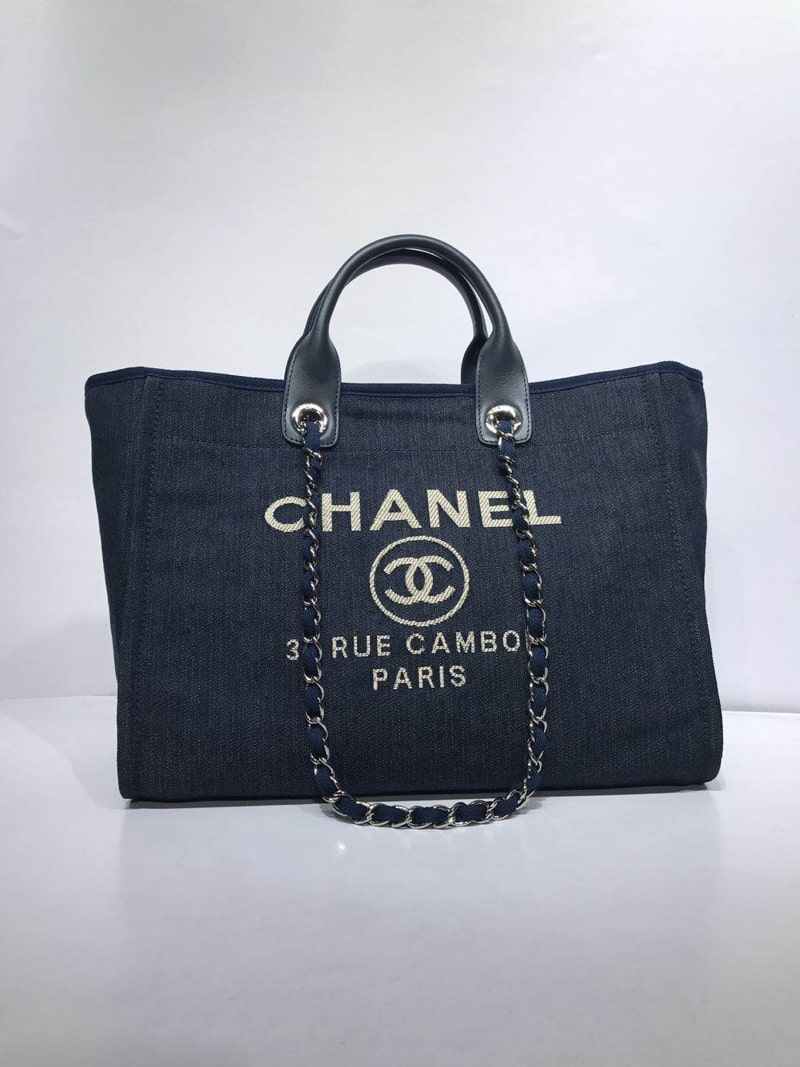 Chanel Deauville Tote Canvas Calfskin Medium – Large Shoulder HandBag Pink Blue – Blue – Black