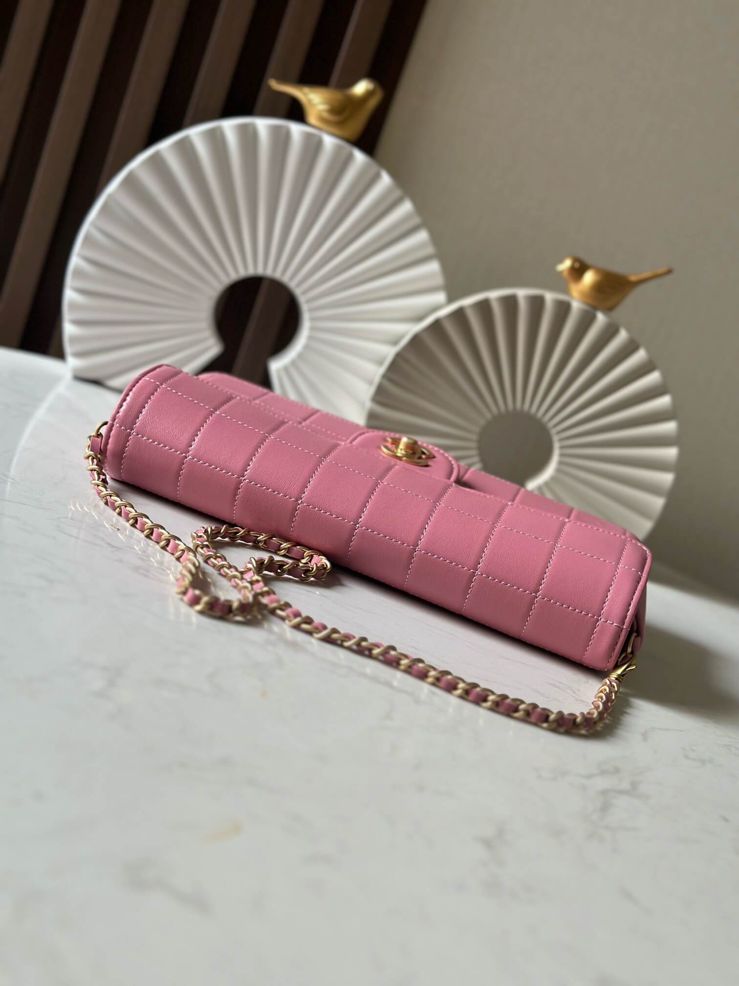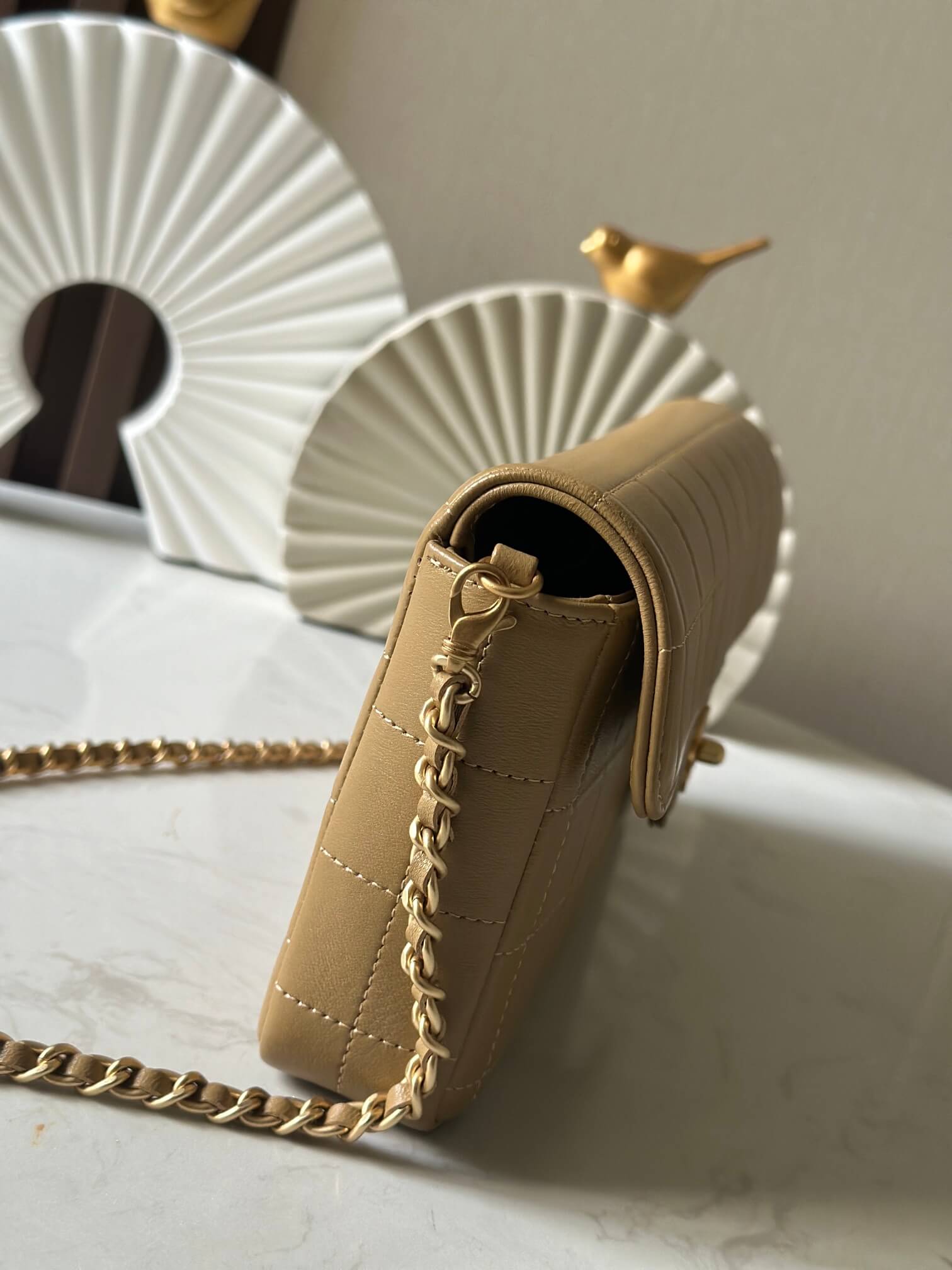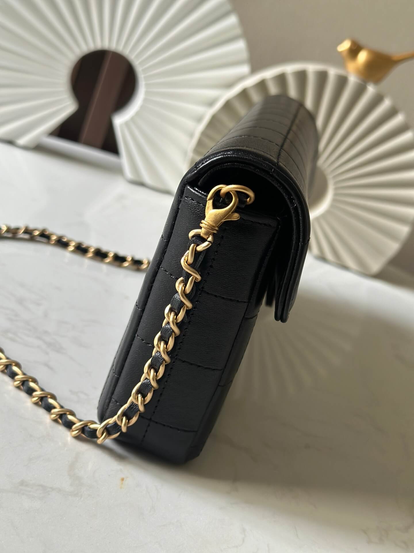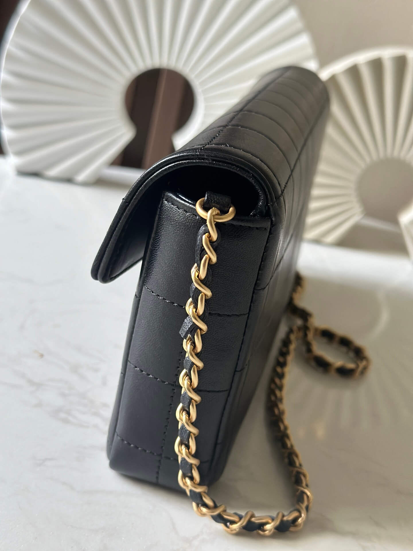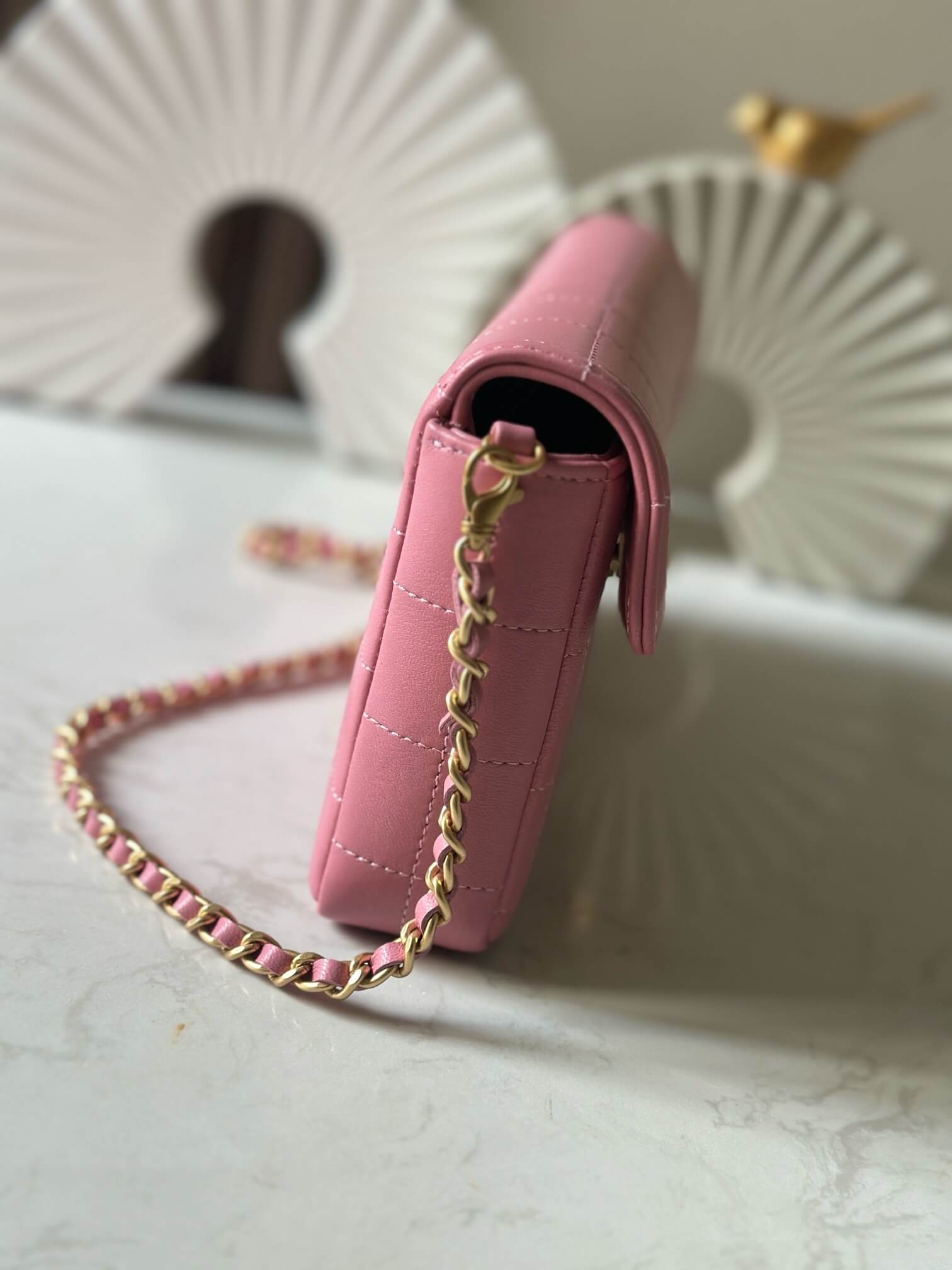 Chanel 22 Mini Shiny Crumpled Calfskin leather Pearl Chain Shoulder Handbag