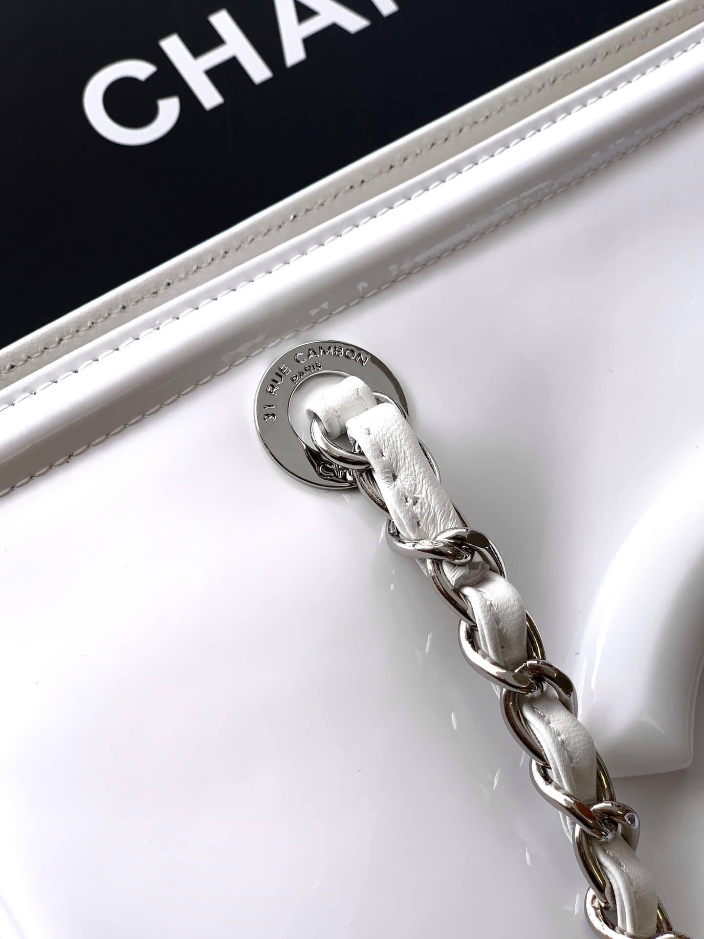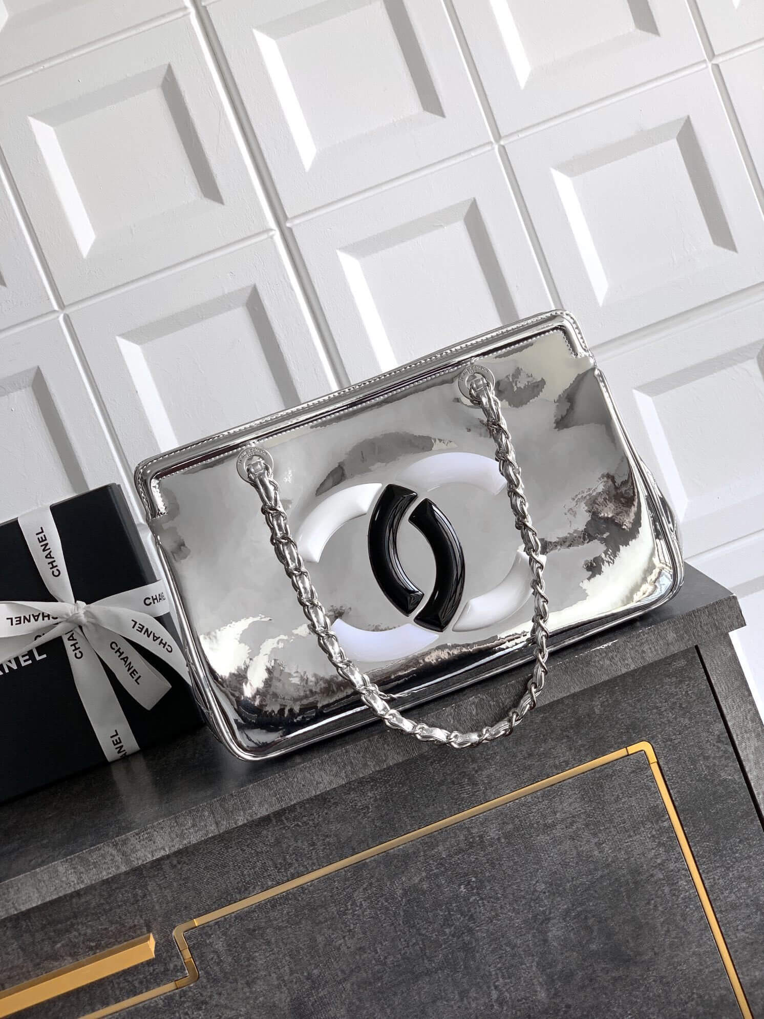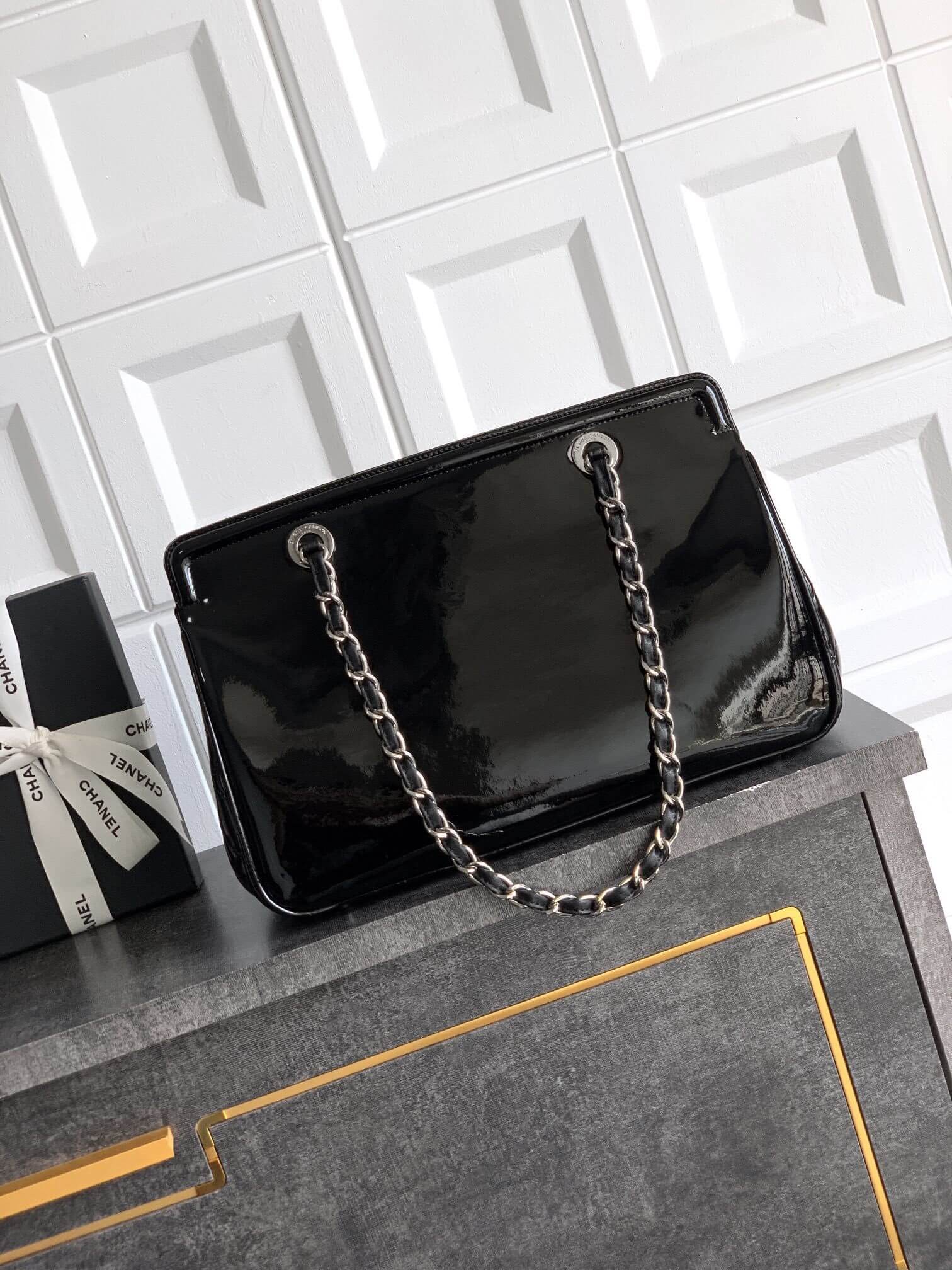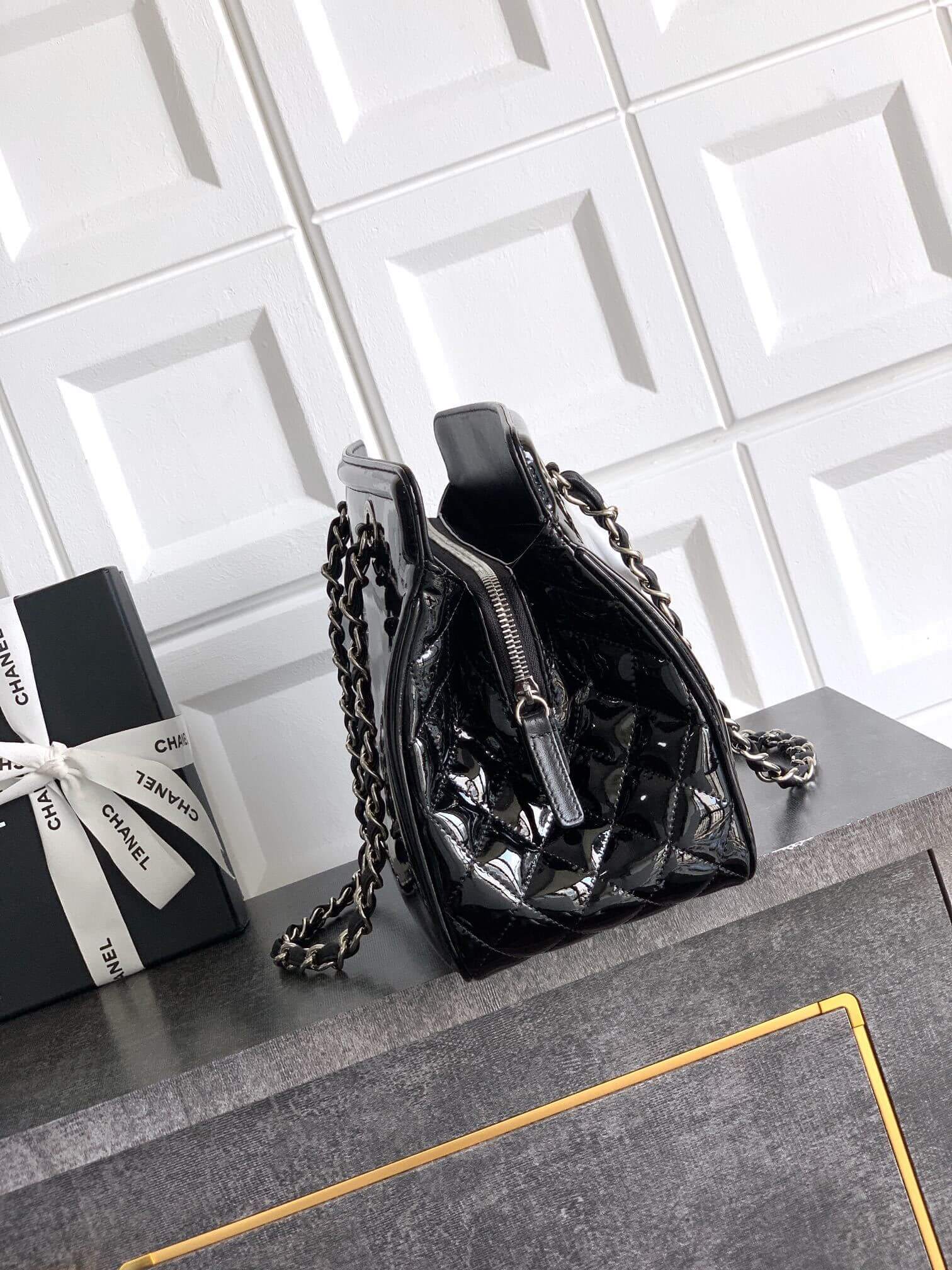 Chanel 22 Shiny Calfskin Shoulder Handbag Black – White