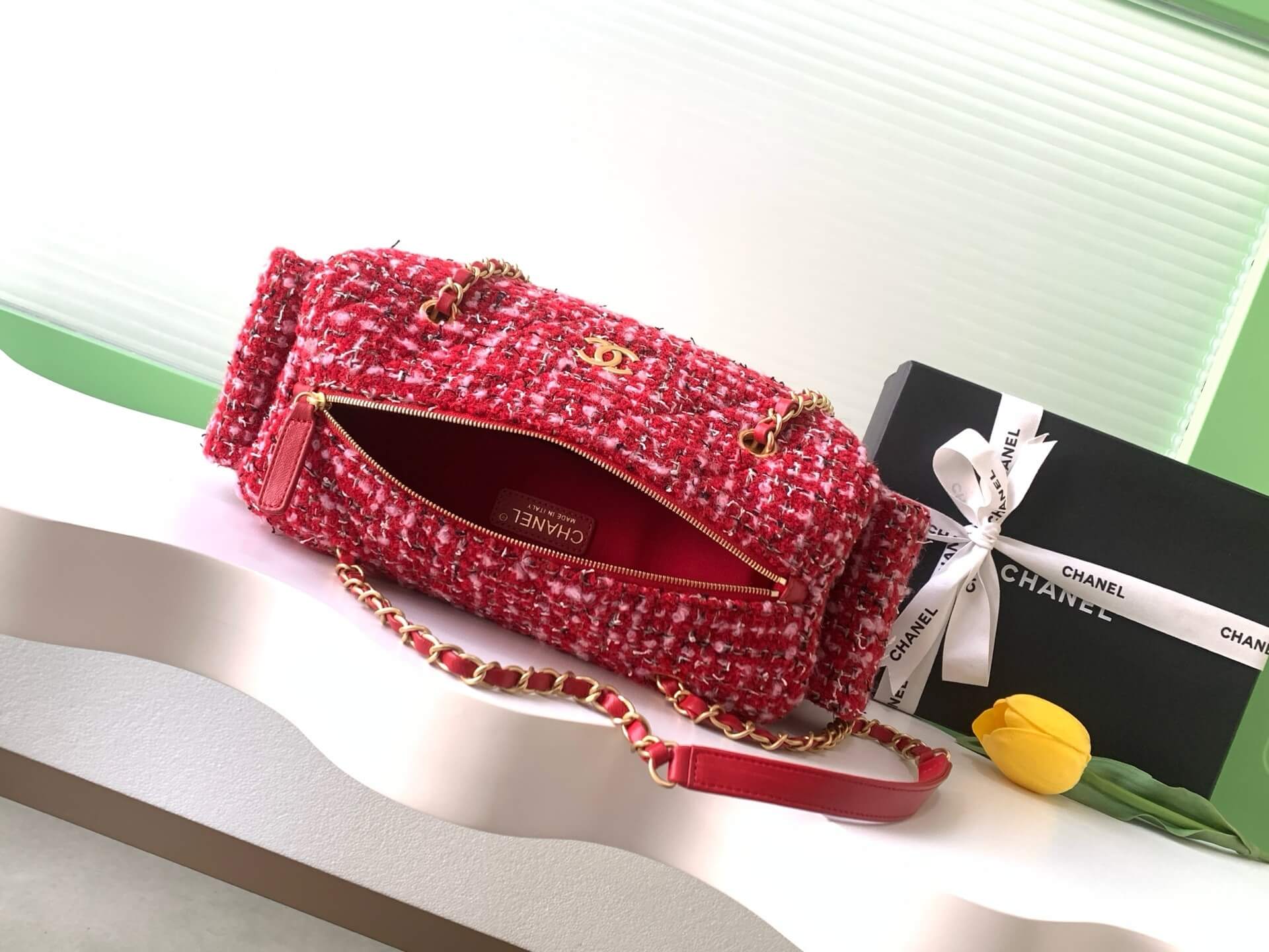 Chanel Mini – Small Bowling Tweed & Gold Metal Red, Pink & Black Shoulder Crossbody Bag
