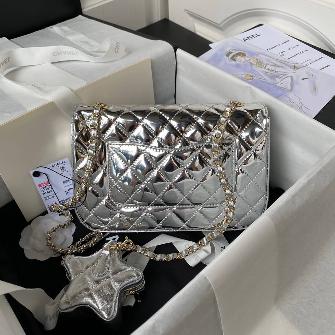 Chanel Mini – Small Flap Star Coin Purse Mirrored Metallic Calfskin Shoulder Crossbody Bag