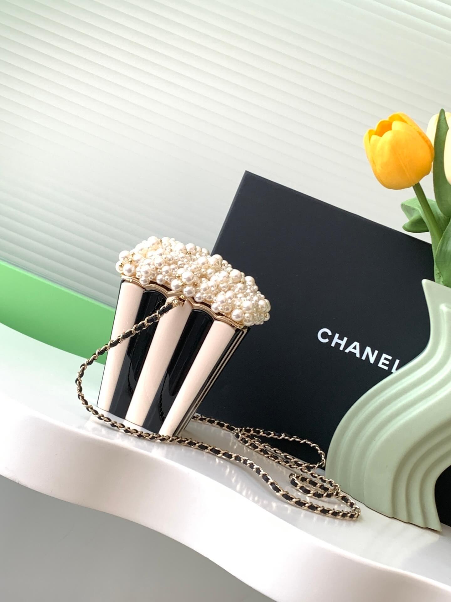 Chanel 22 Shiny Calfskin Shoulder Handbag Black – White