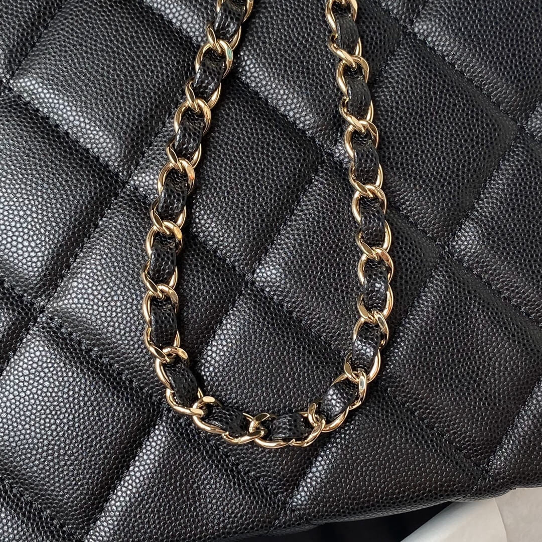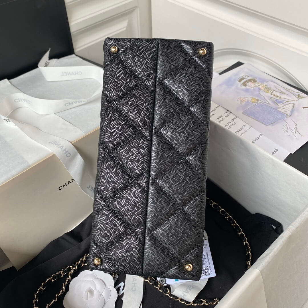 Chanel Caviar Tote Shopping Shoulder HandBag Beige/Black – Black