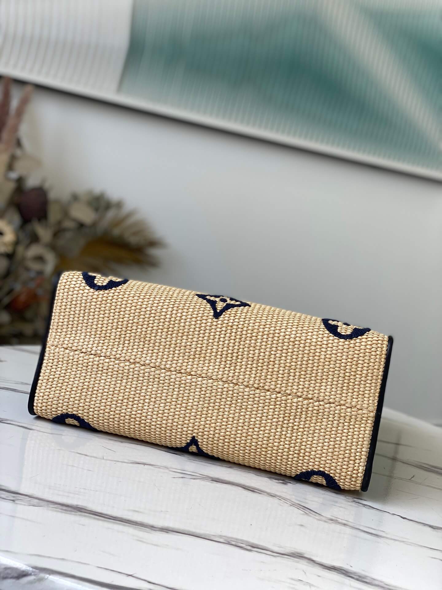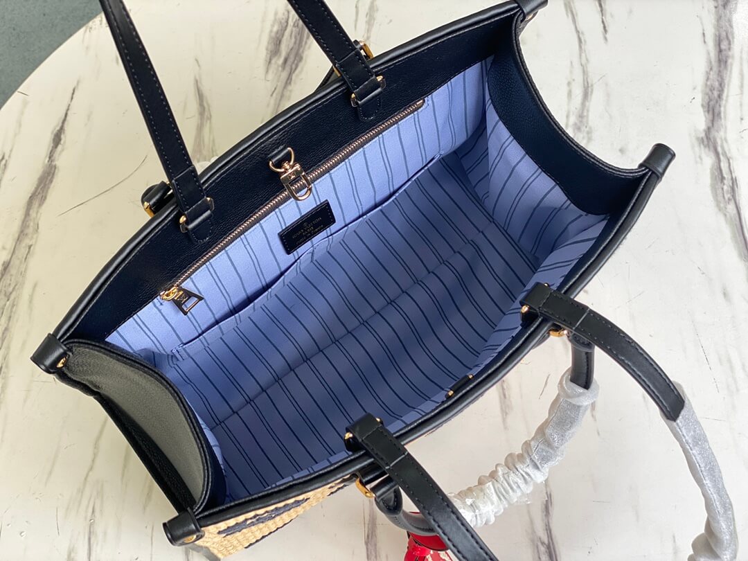 Louis LV Vuitton Monogram Raffia OnTheGo MM Tote Handbag M57723 Blue