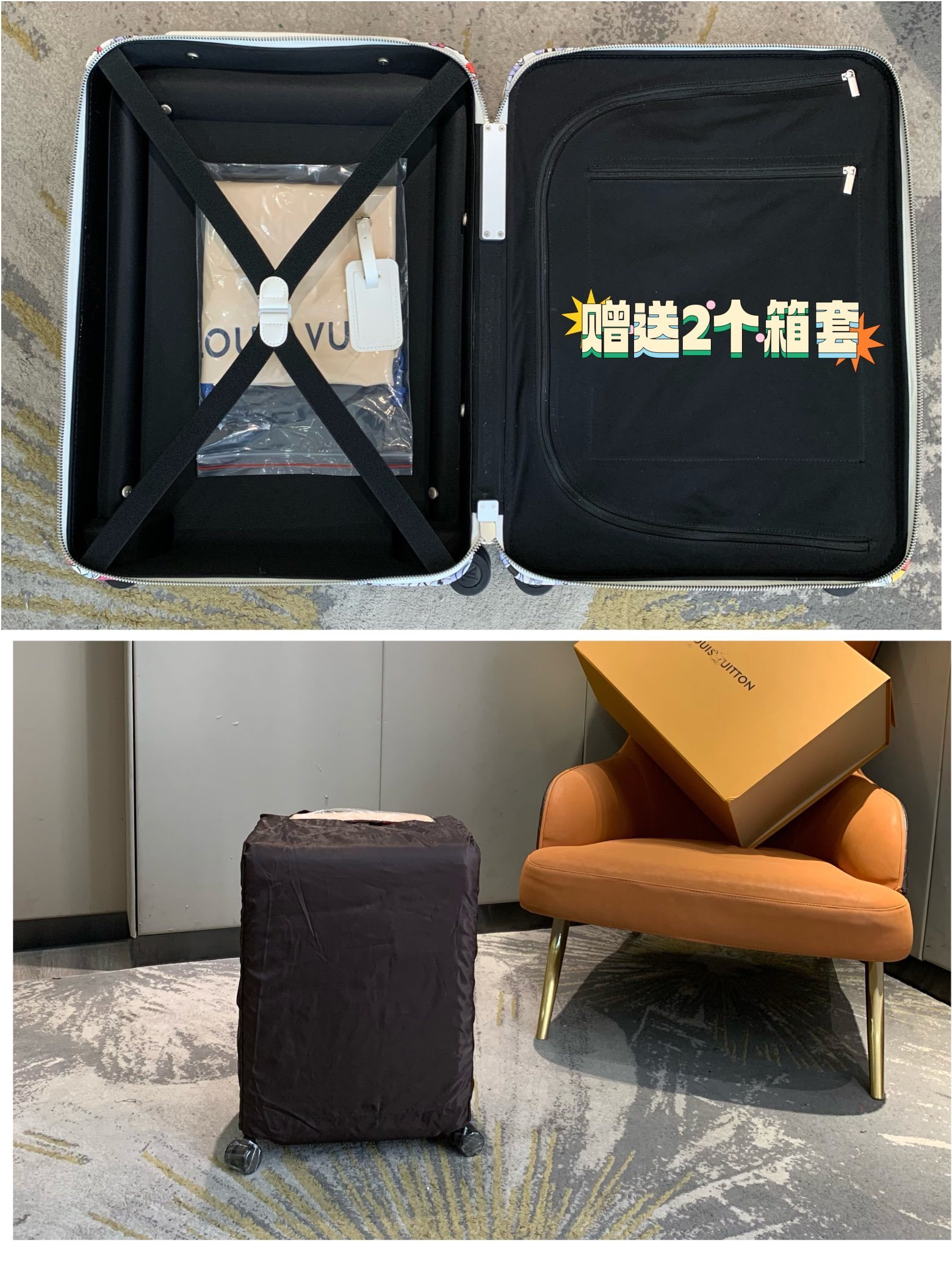 Louis Vuitton LV Monogram Empreinte Giant leather Horizon 55 Cabin Suitcase Travel Bag M13783 Black M46074 Beige