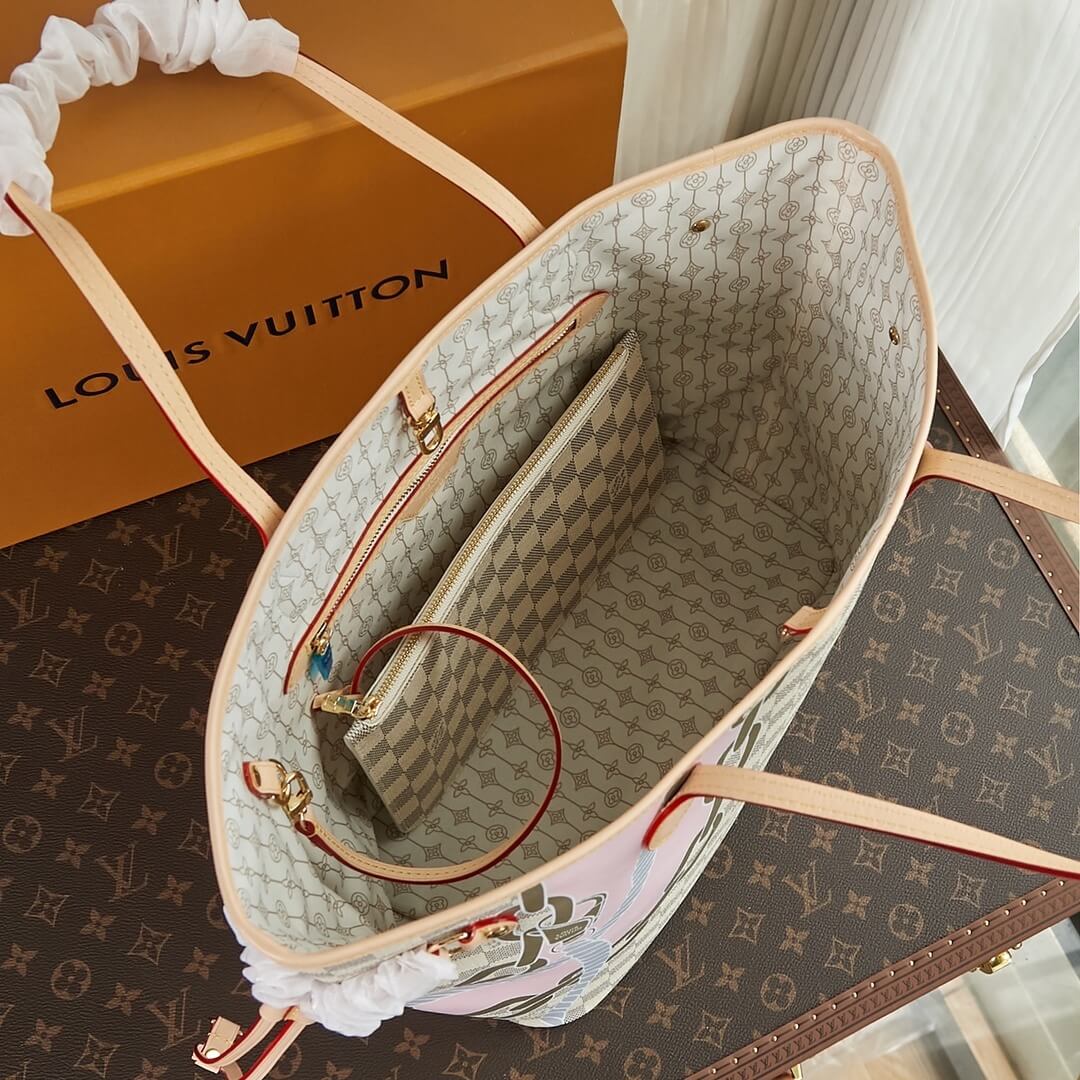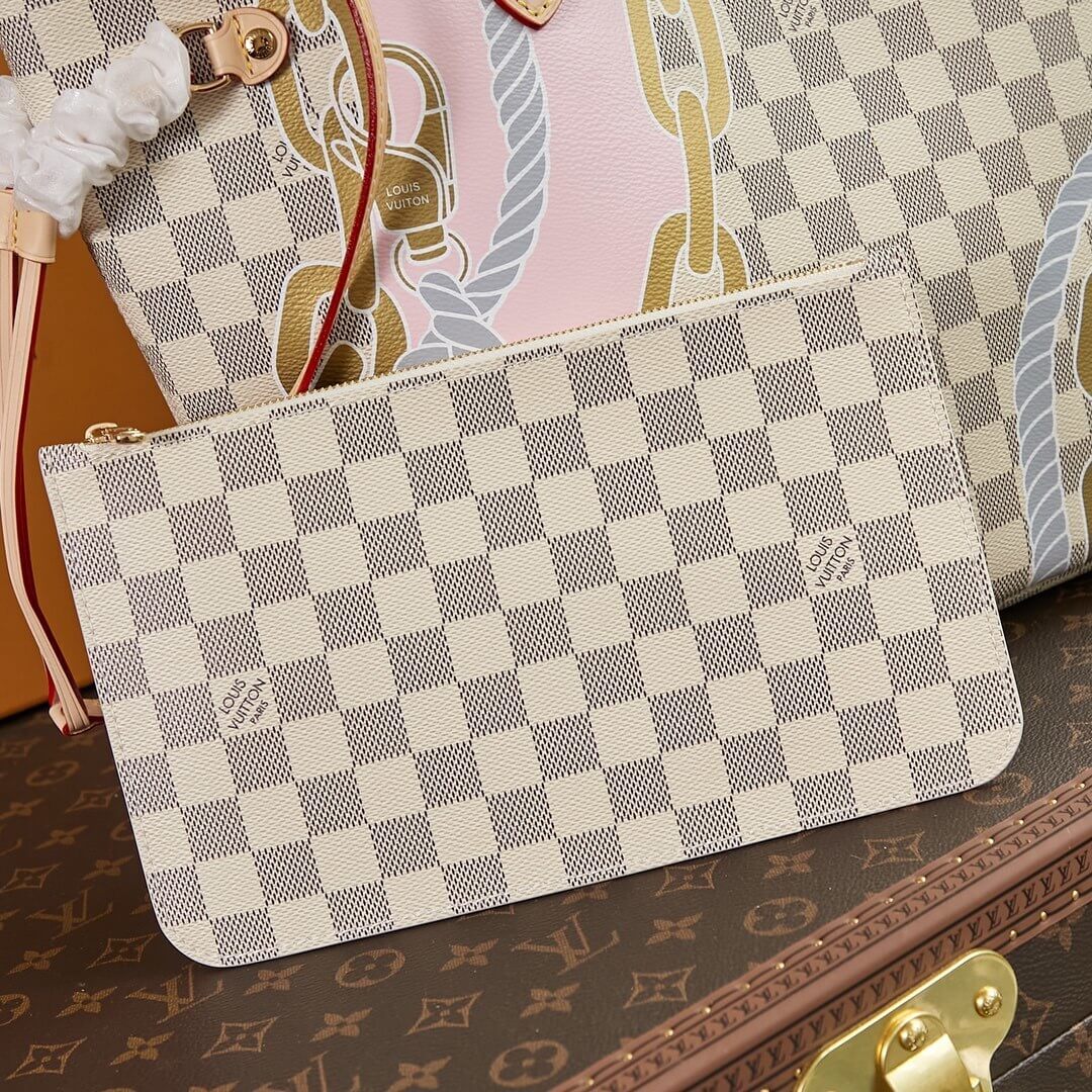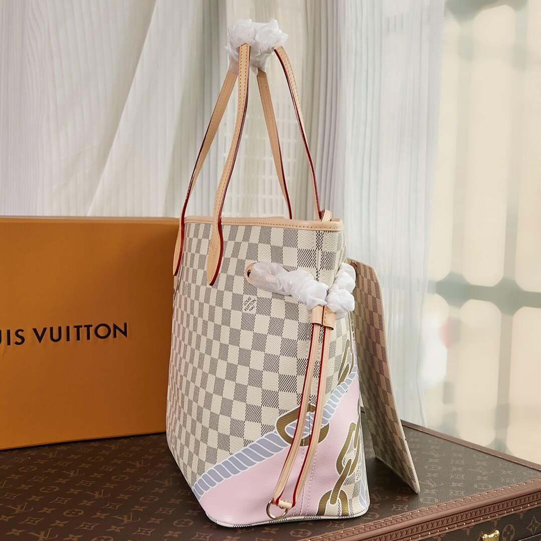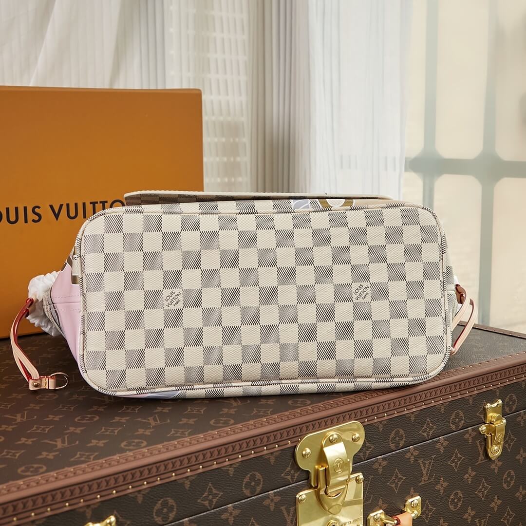 Louis Vuitton LV Damier Azur canvas Neverfull MM Tote Handbag N40471 White Grid