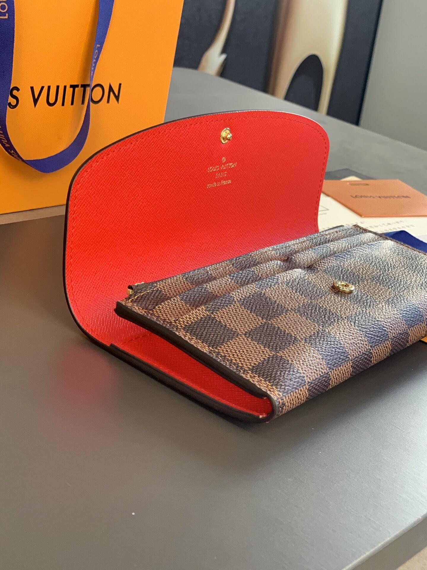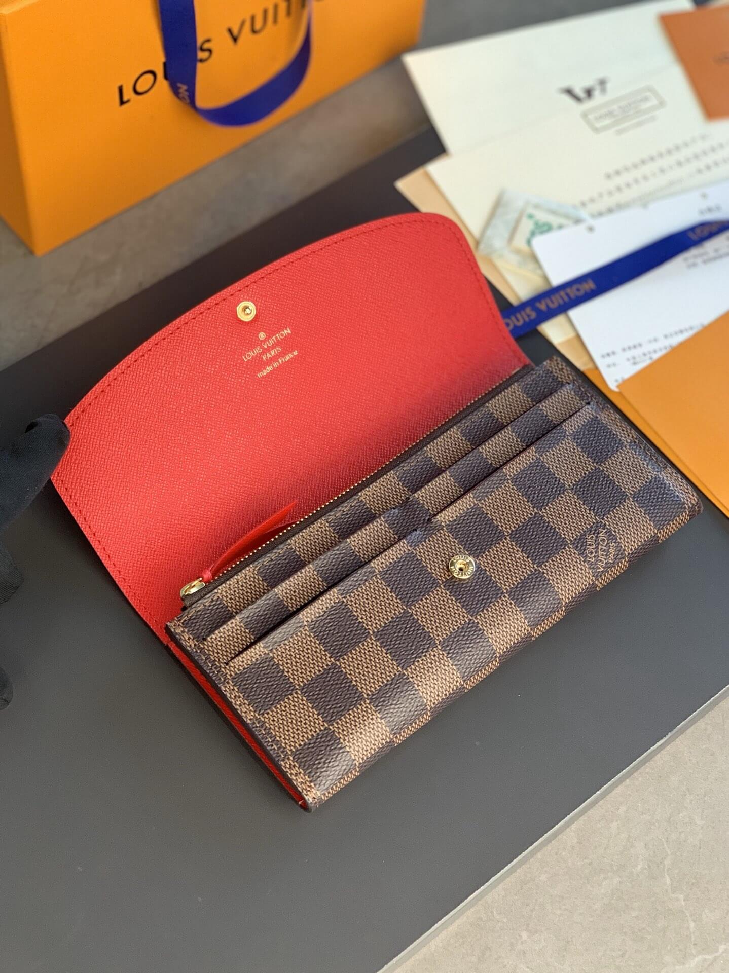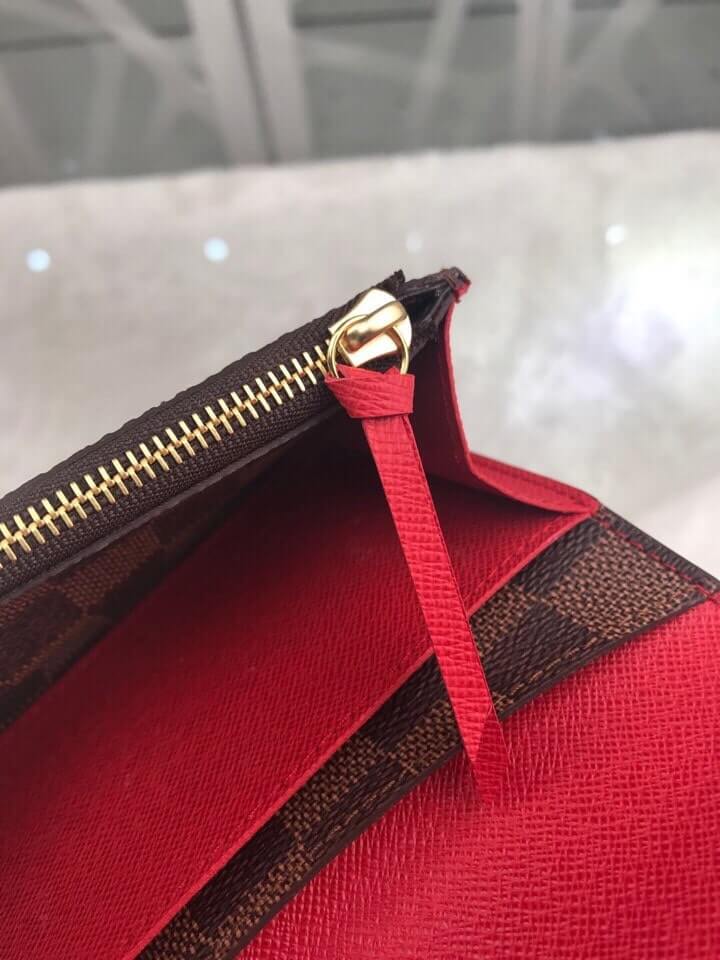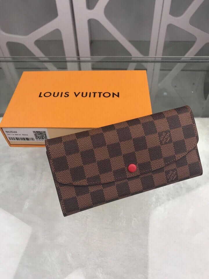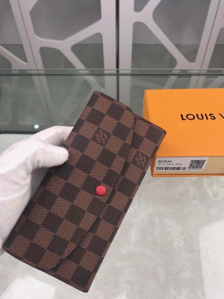 Louis Vuitton LV Damier Ebane Canvas Emilie Wallet Fuchsia Pink – Maroon – Orange