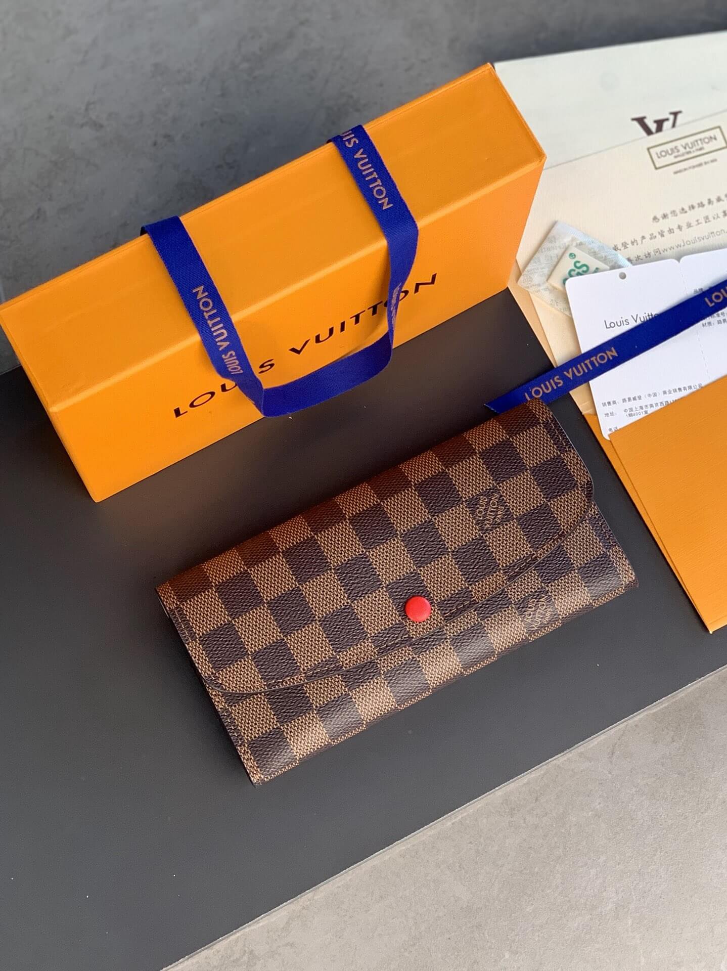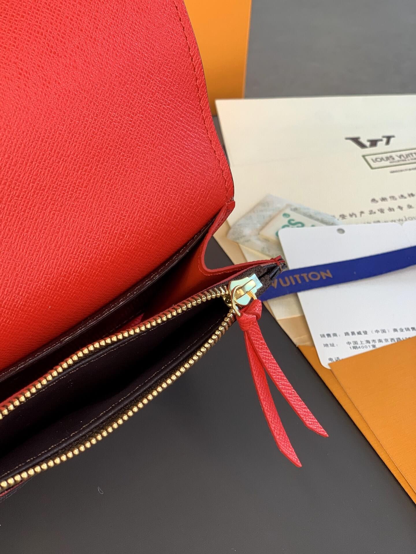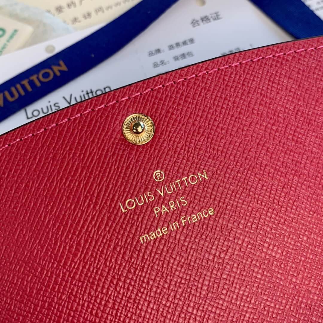 Louis Vuitton LV Damier Ebane Canvas Emilie Wallet Fuchsia Pink – Maroon – Orange