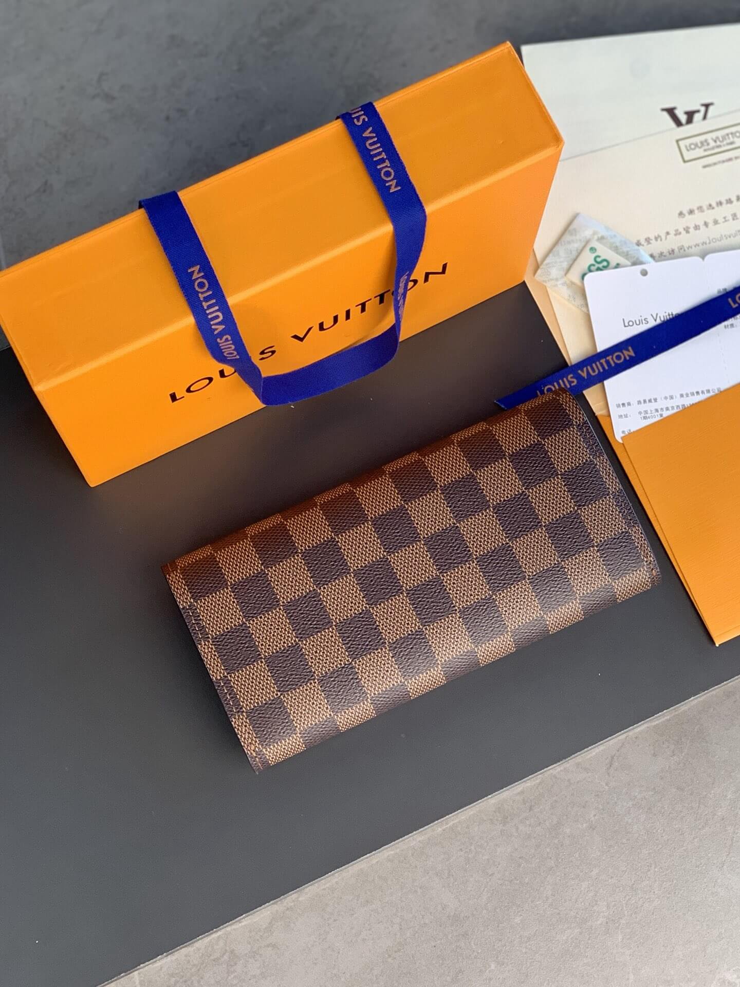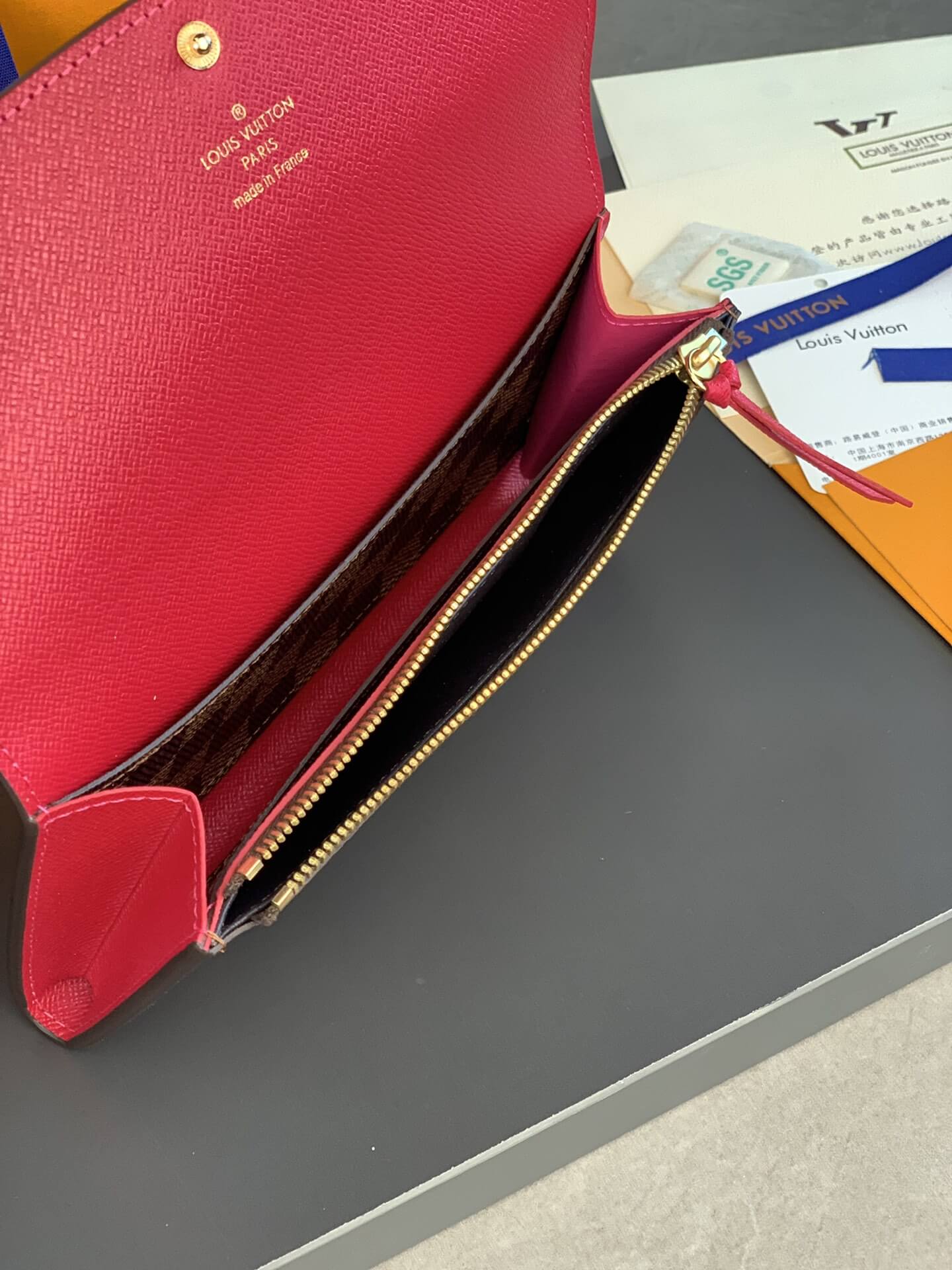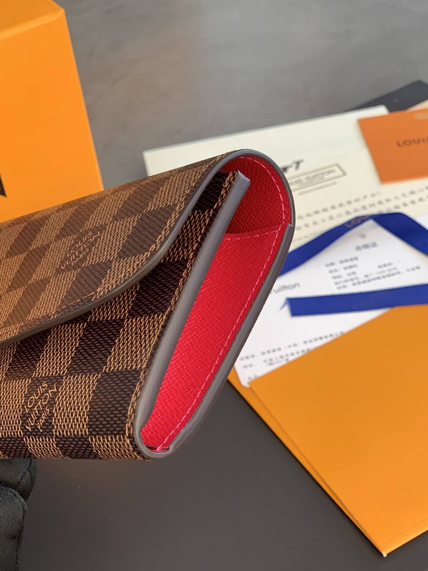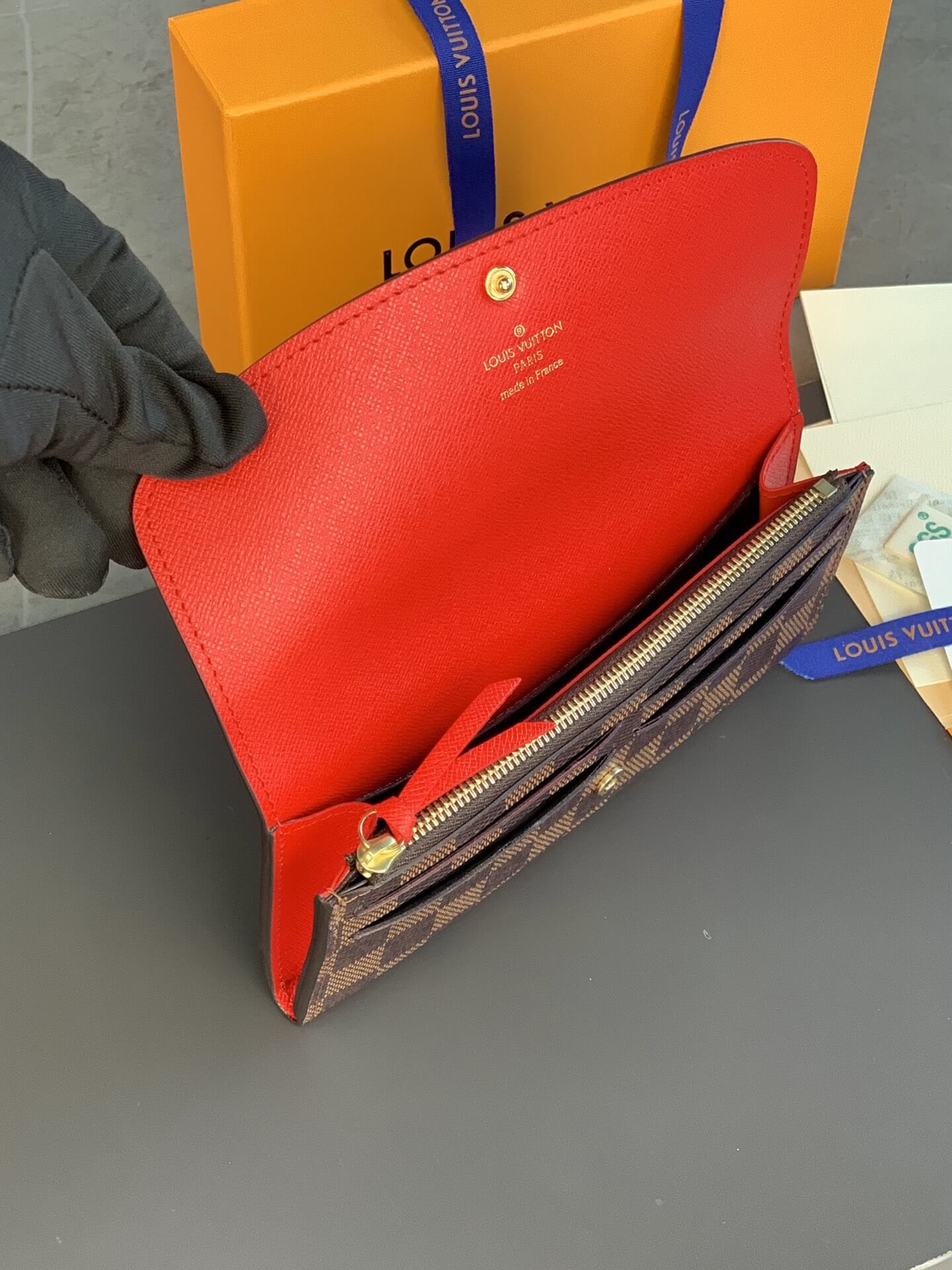 Louis Vuitton LV Damier Ebane Canvas Emilie Wallet Fuchsia Pink – Maroon – Orange
