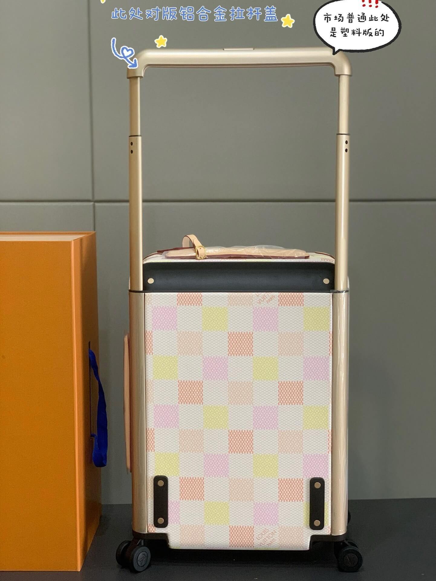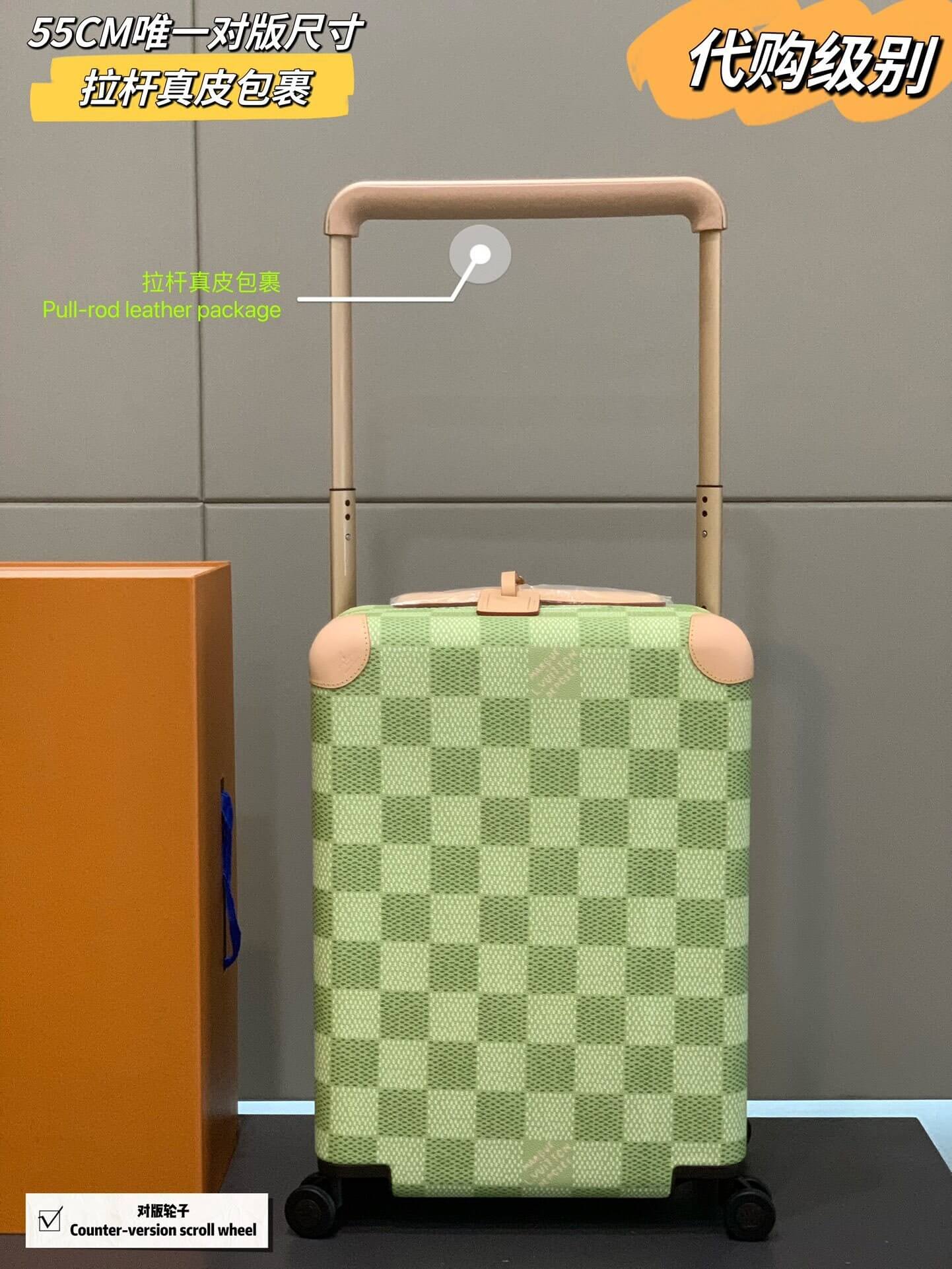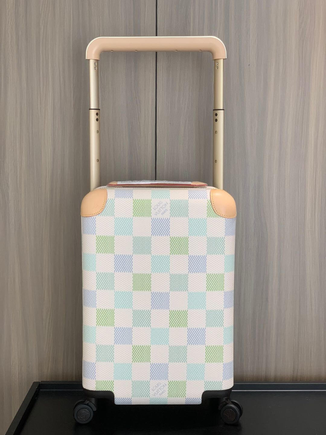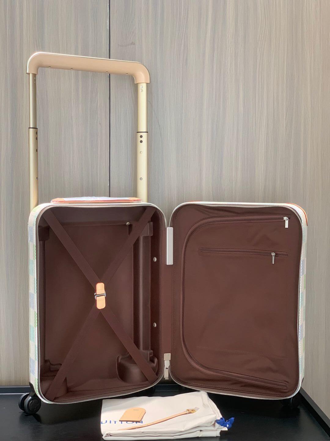 Louis Vuitton LV Damier Heritage coated canvas Horizon 55 Rolling Suitcase Travel Bag Green – Blue – Peach Rose