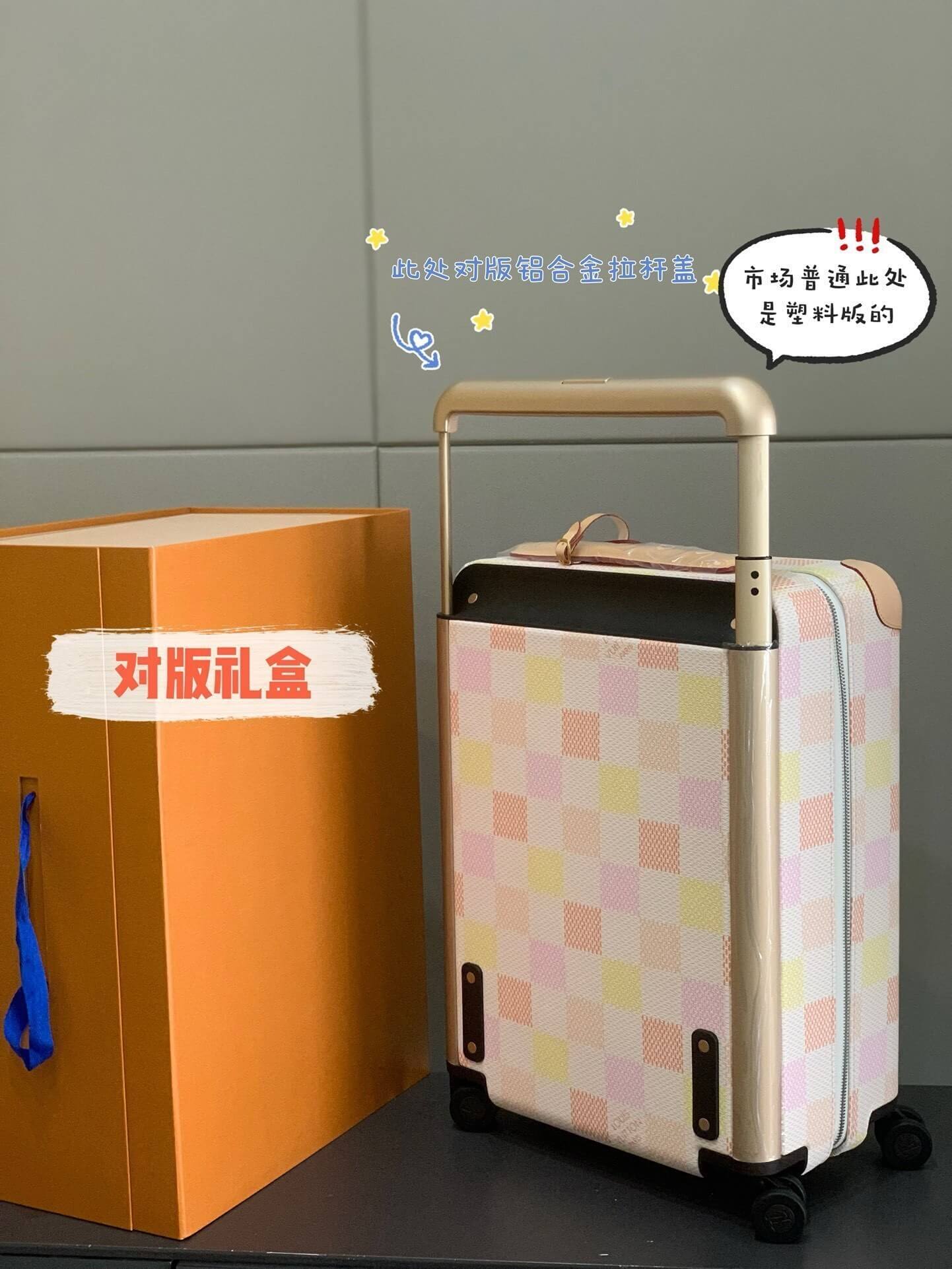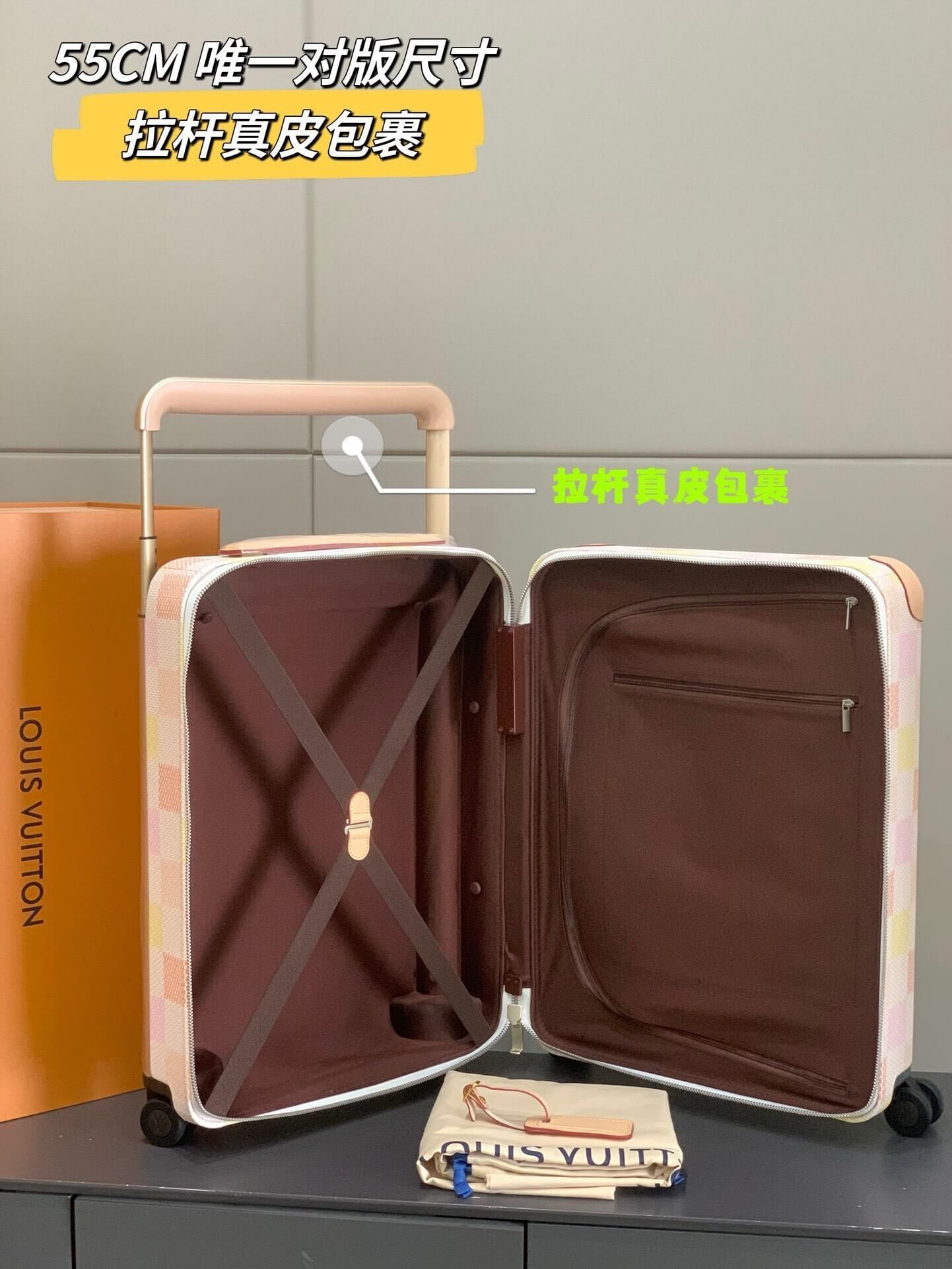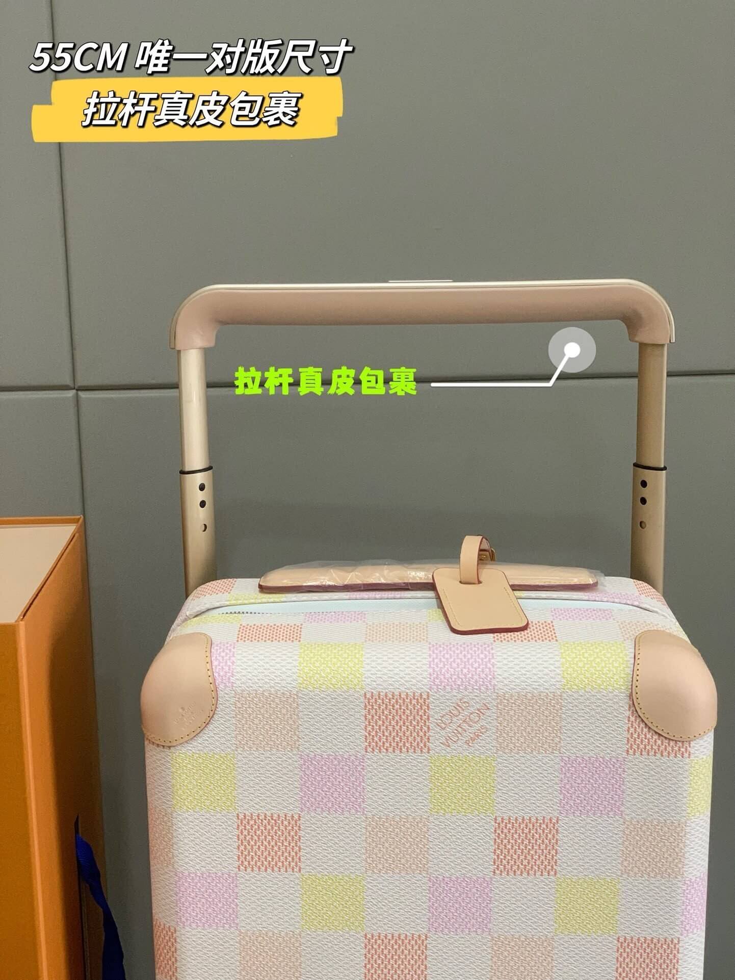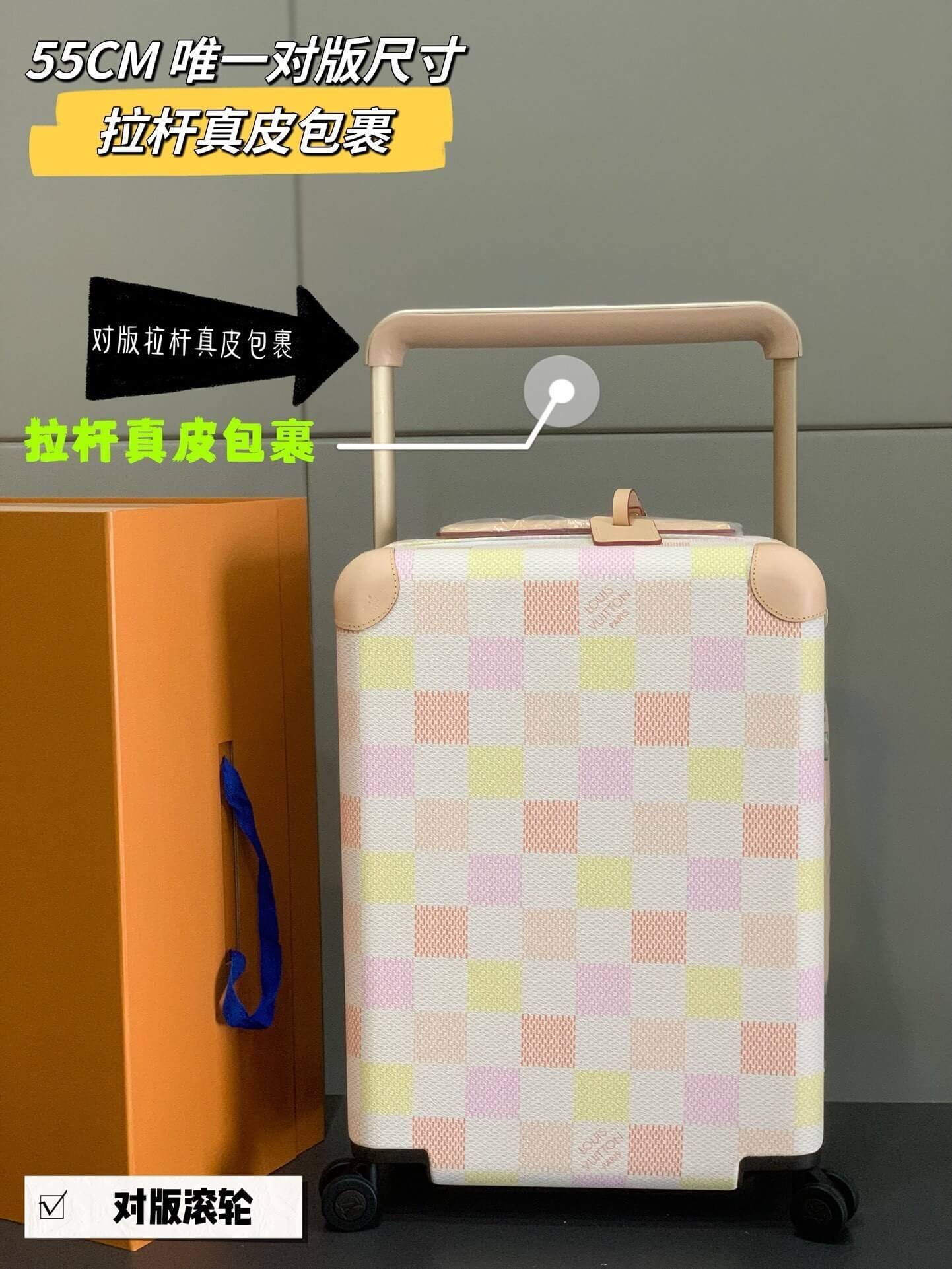 Louis Vuitton LV Damier Heritage coated canvas Horizon 55 Rolling Suitcase Travel Bag Green – Blue – Peach Rose
