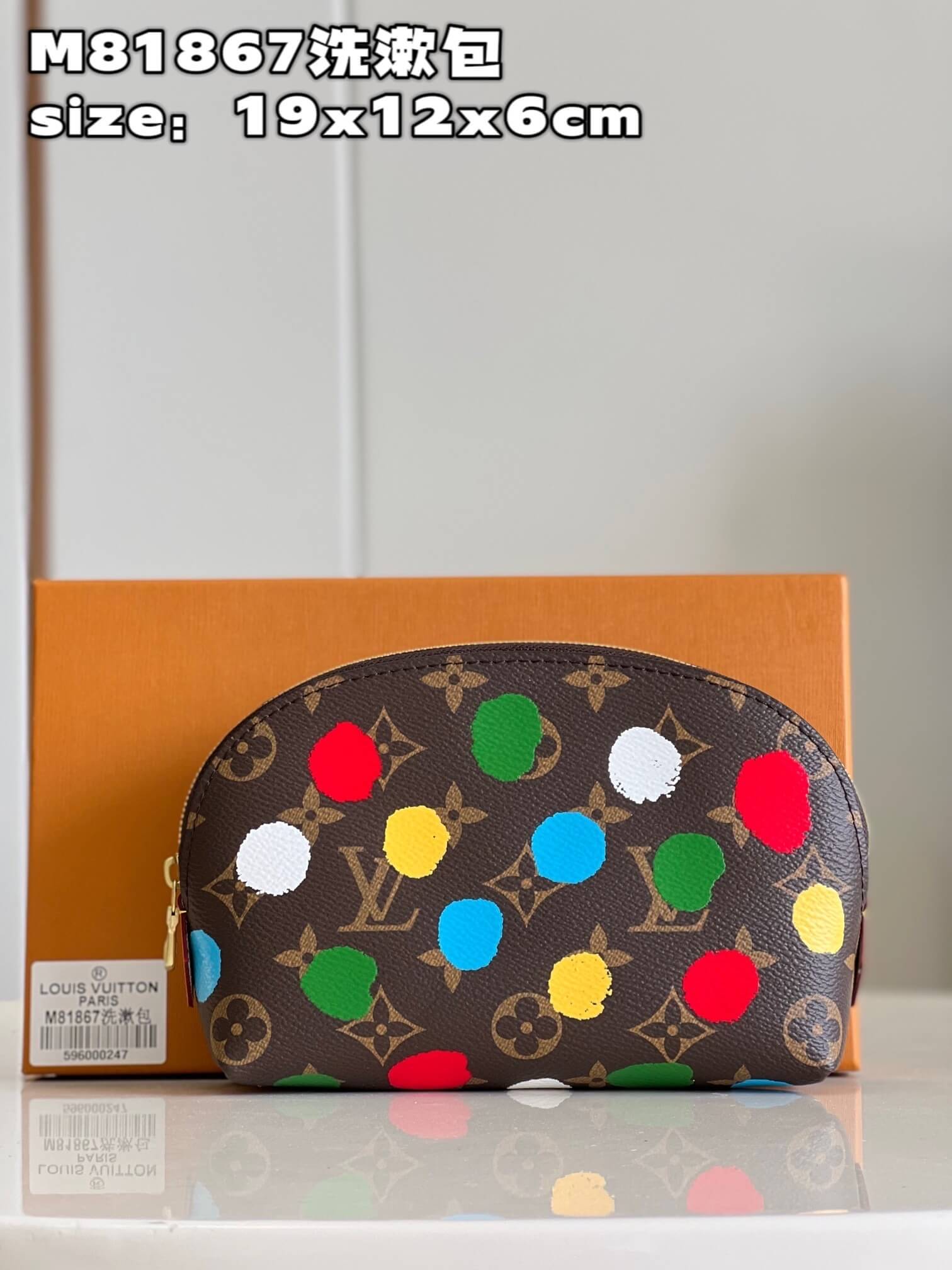 Louis Vuitton Monogram canvas LV x YK Dots print Cosmetic Pouch M81895 Multicolor Red