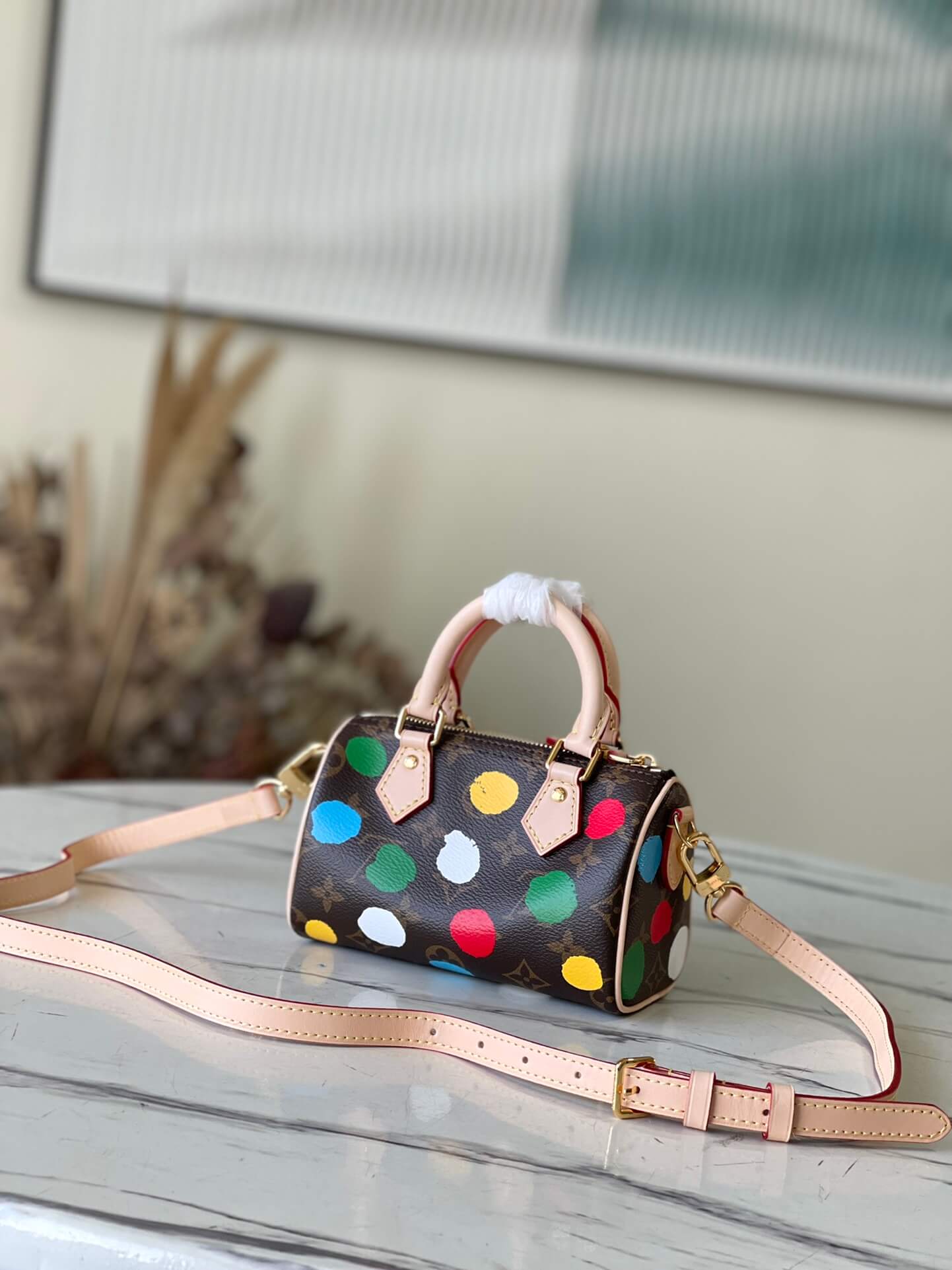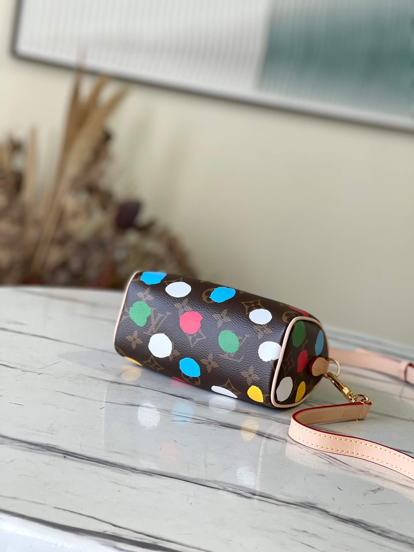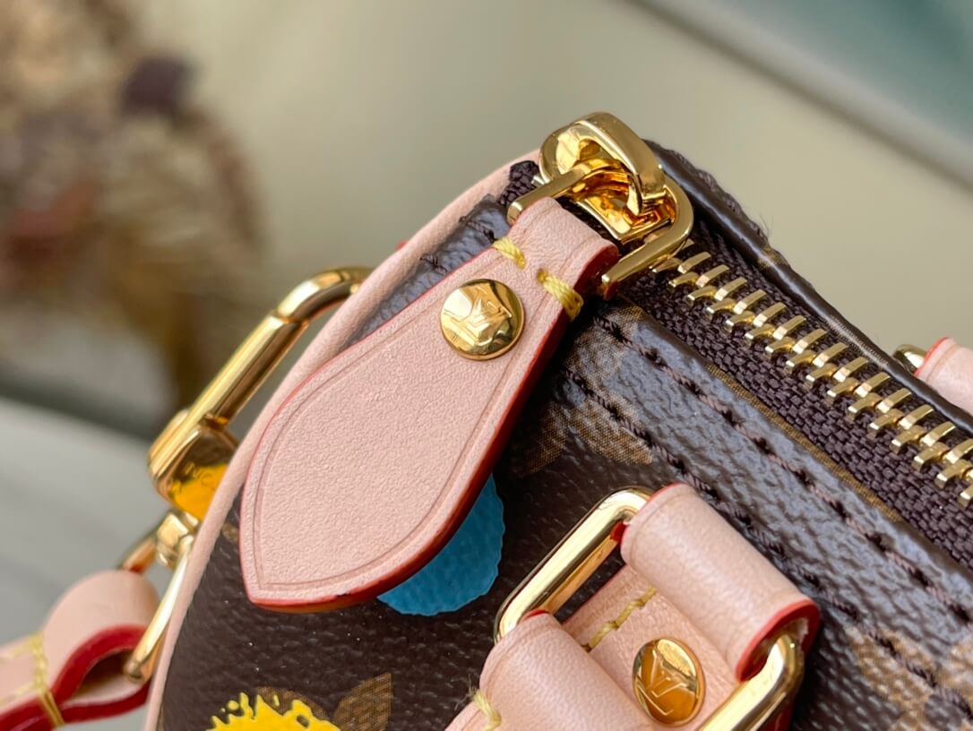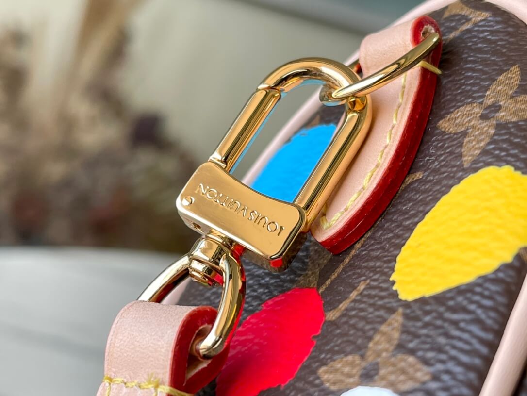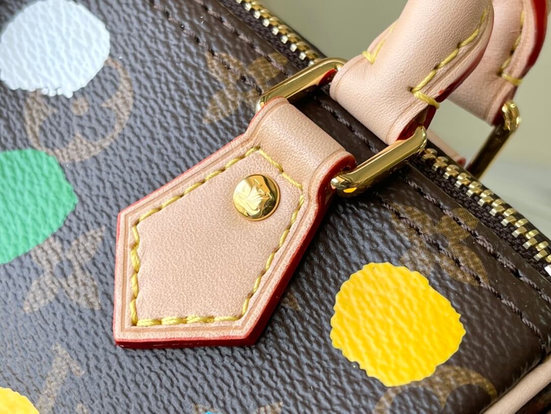 Louis Vuitton Monogram canvas LV x YK Dots print Nano Speedy Shoulder HandBag M81979 Multicolor Red