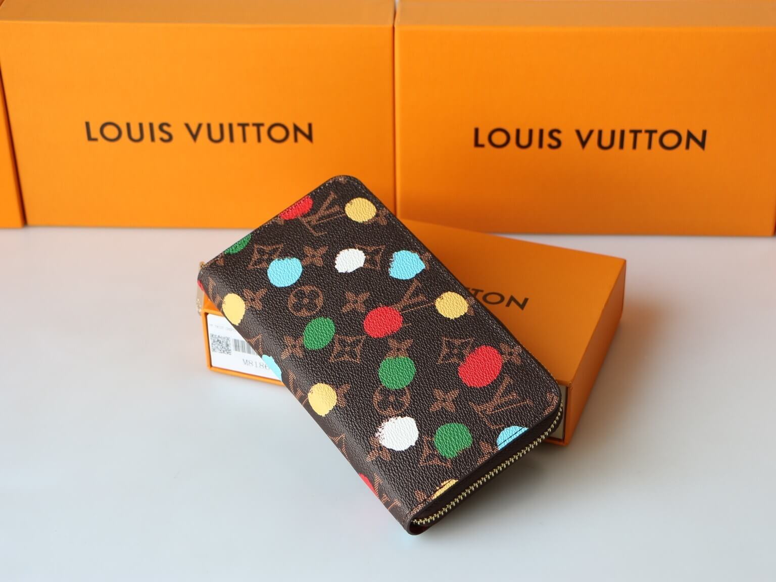 Louis Vuitton Monogram canvas LV x YK Dots print Zippy Wallet M81864 Multicolor Red