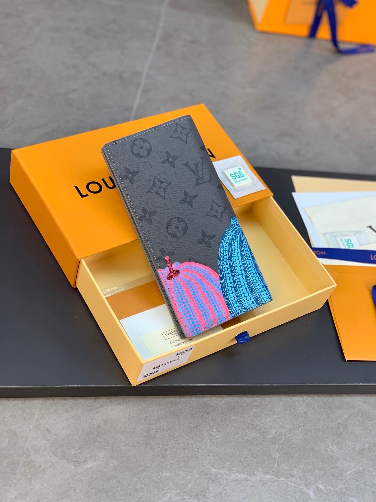 Louis Vuitton Monogram Eclipse Reverse coated canvas LV x YK Brazza Wallet Black Flower