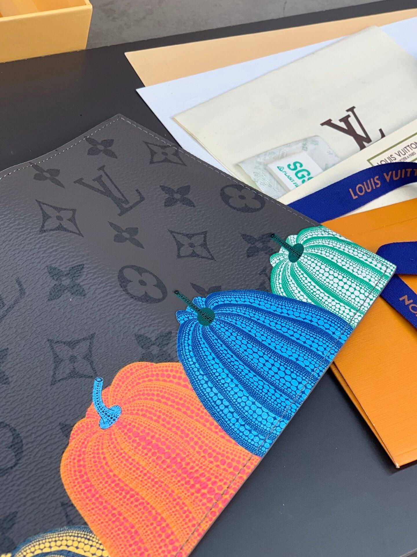 Louis Vuitton Monogram Eclipse Reverse coated canvas LV x YK Pocket Organizer Card Holder Black Flower