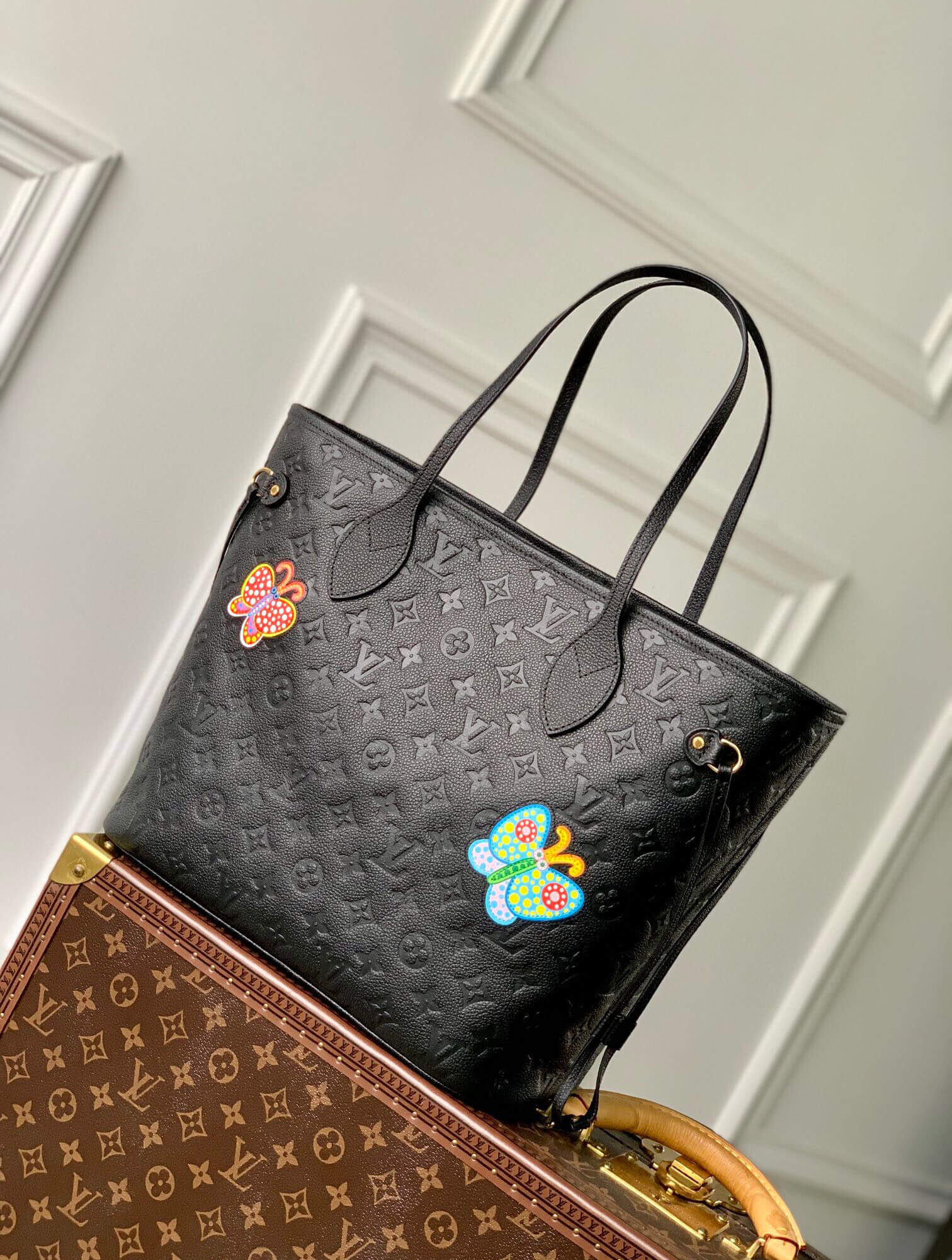 Louis Vuitton Monogram Empreinte LV x YK Sac Neverfull MM Shoulder HandBag M21733 Black Flower – White Cream Flower