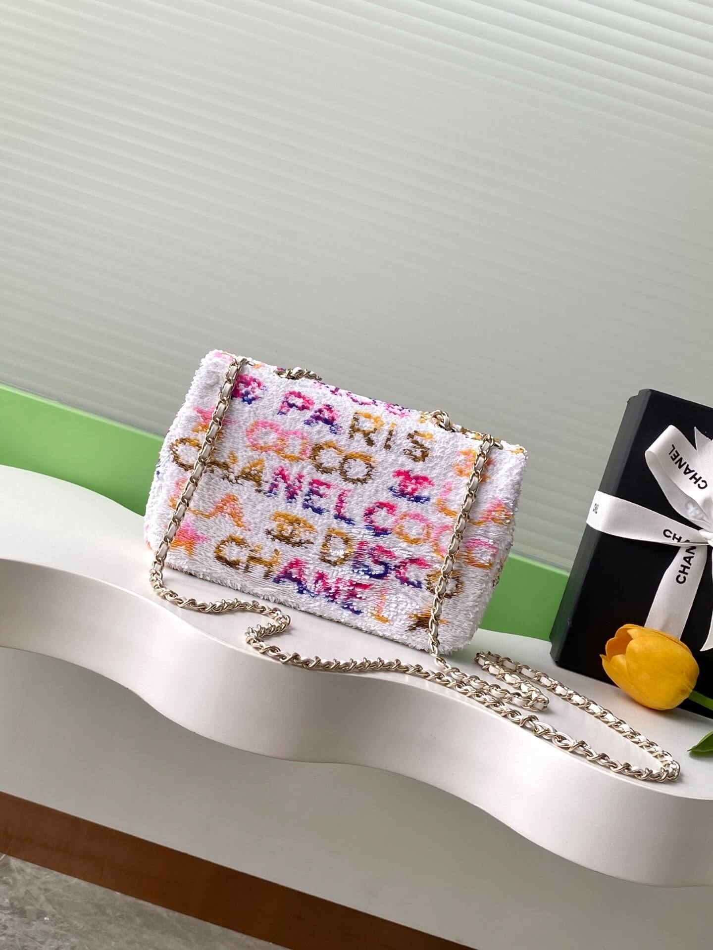 Chanel Flap Tweed Fabric Sequins Gold-tone metal chain and CC turn-lock closure Shoulder Crossbody Bag