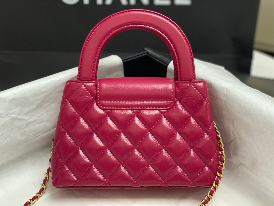 Chanel Kelly Mini Flap Top Handle With Chain Shiny Aged Calfskin Leather Shoulder Crossbody Handbag