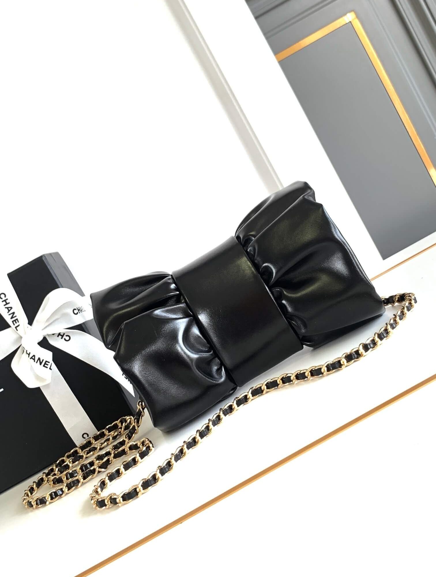 Chanel Maxi Bow Mini Metallic Lambskin and Gold-Tone Metal Shoulder Crossbody Bag