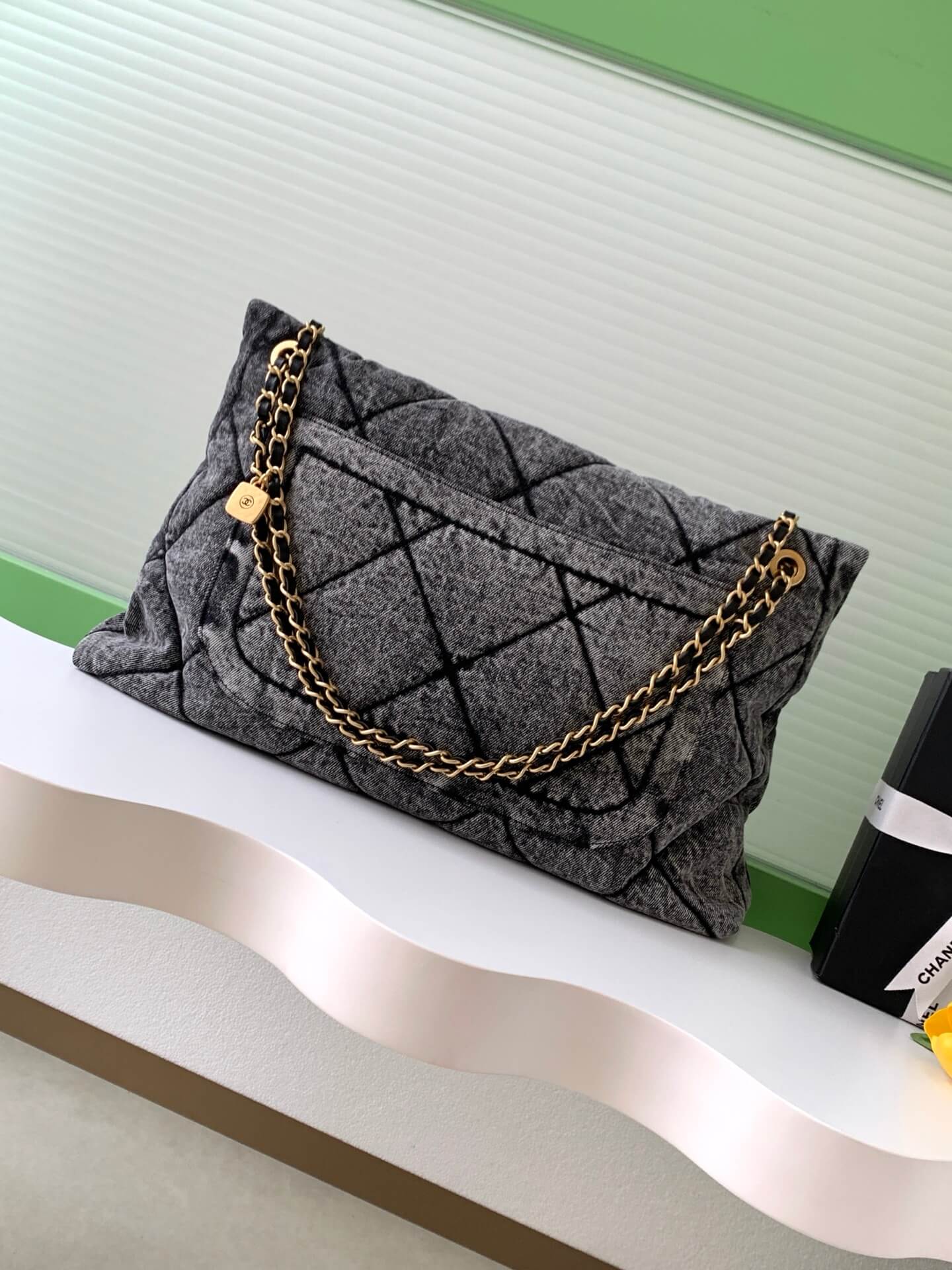 Chanel Maxi Flapbag Washed Denim & Gold-Tone Metal Shoulder Bag Blue – Black