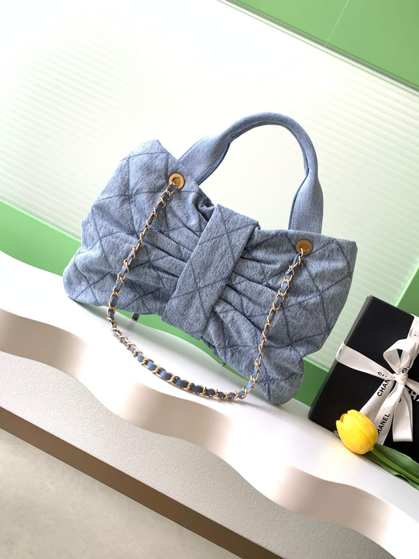 Chanel Maxi Bow Mini – Small Washed Denim & Gold-Tone Metal Shoulder Handbag