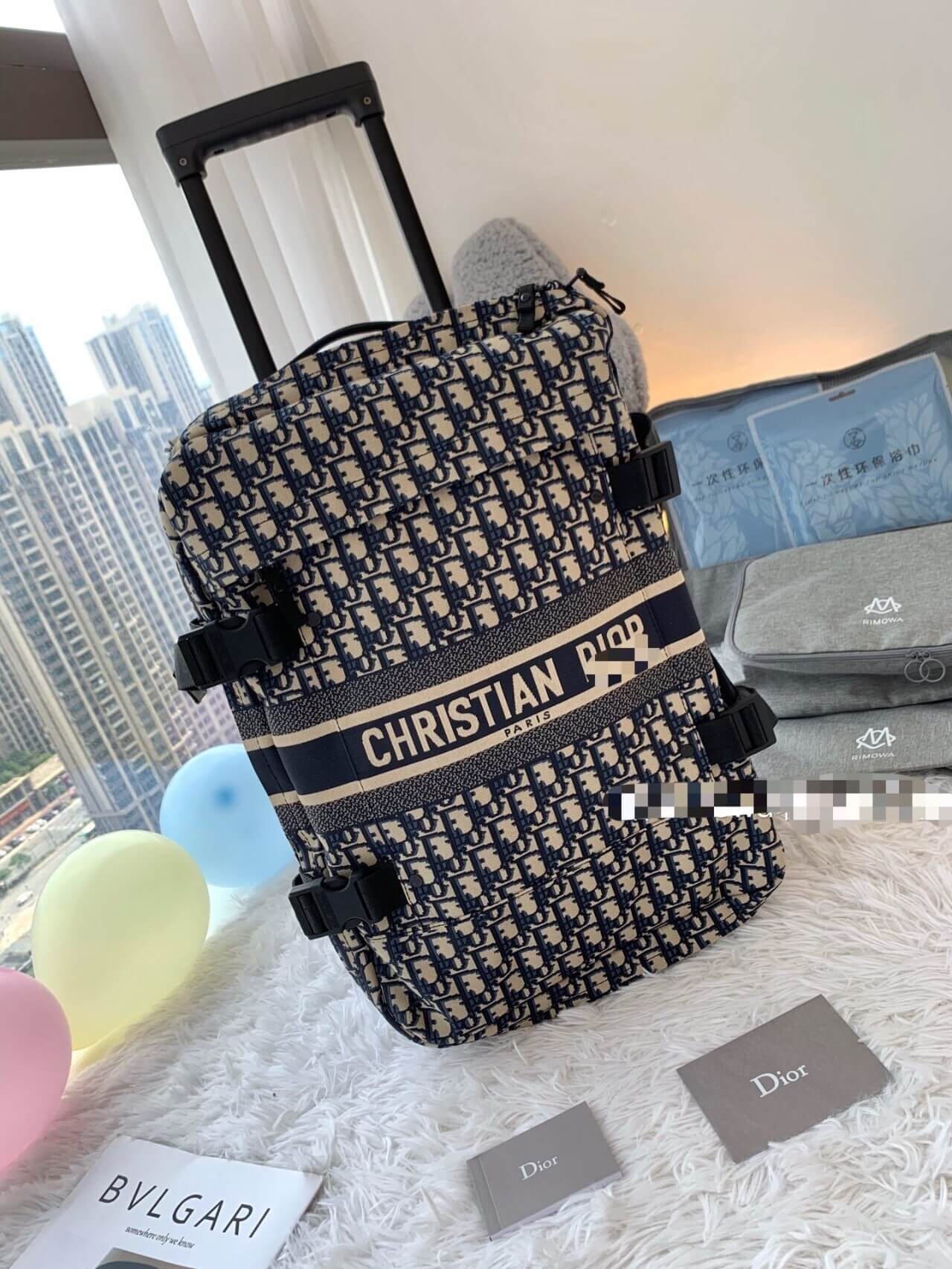 Dior & Rimowa Oblique Aluminum Carry-On Rolling Suitcase Travel Bag Gradient Blue – Black