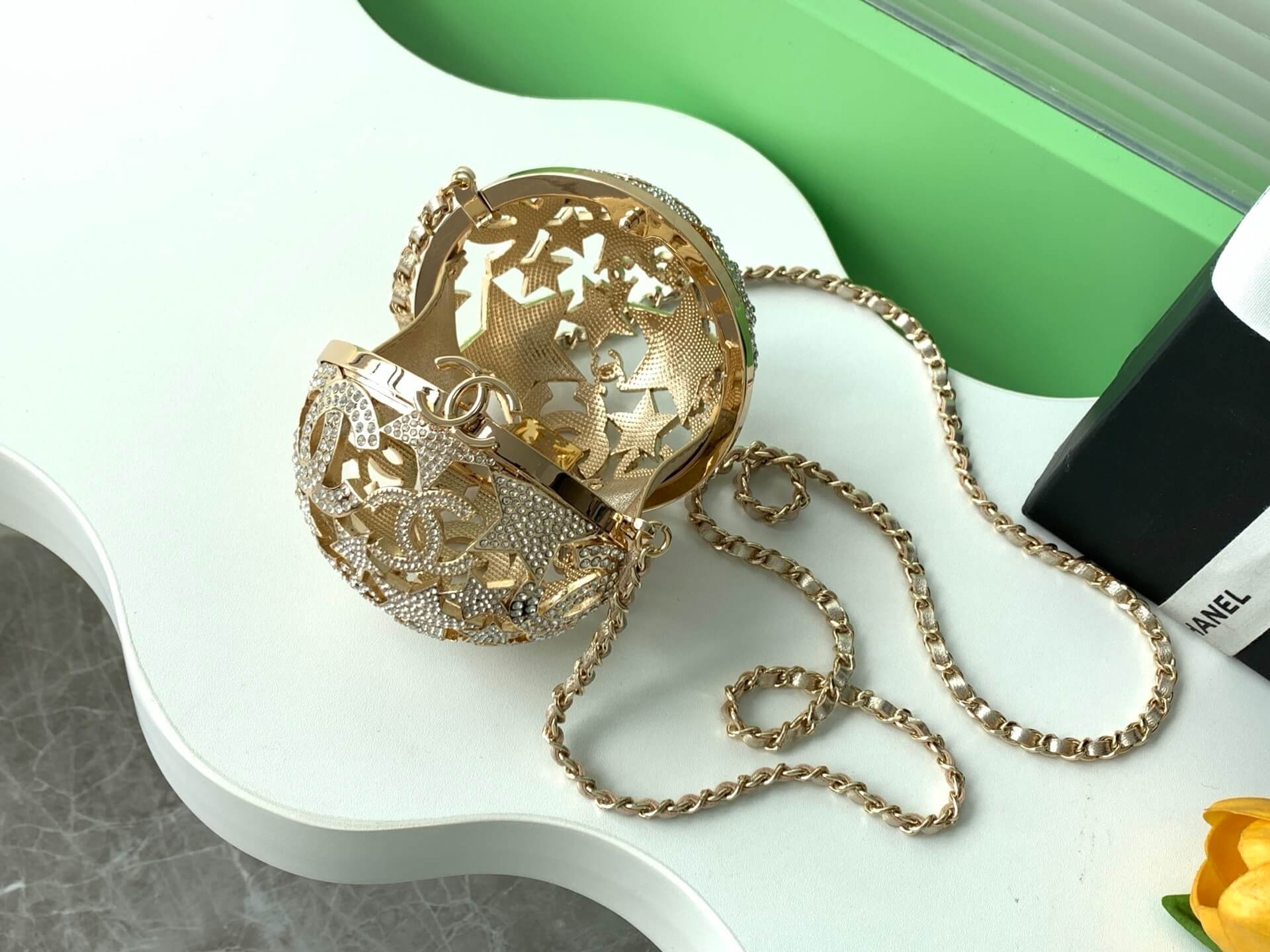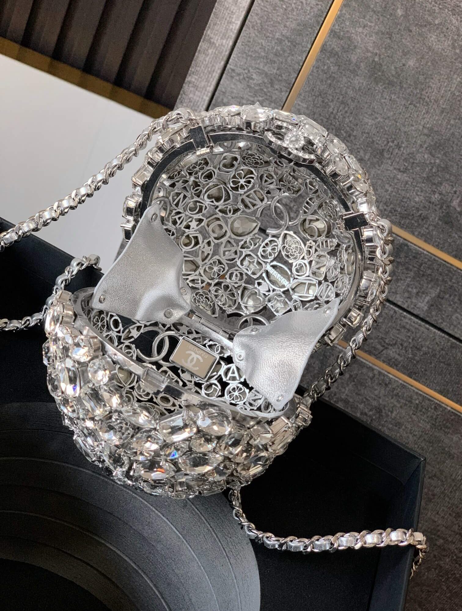 Chanel Sphere Minaudiere evening Shoulder Crossbody Bag Silver – Black
