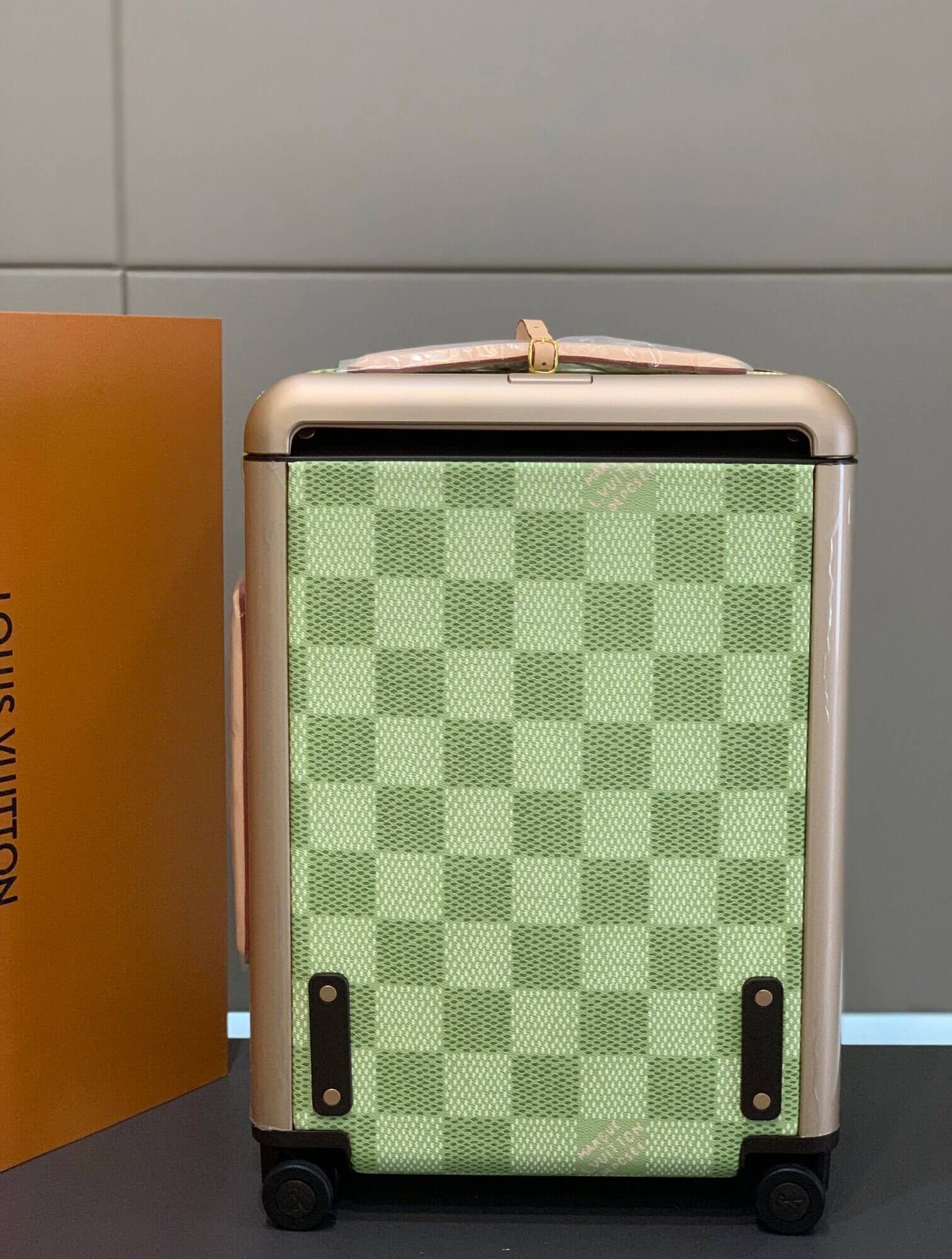 Louis Vuitton LV Damier Heritage coated canvas Horizon 55 Rolling Suitcase Travel Bag Green – Blue – Peach Rose